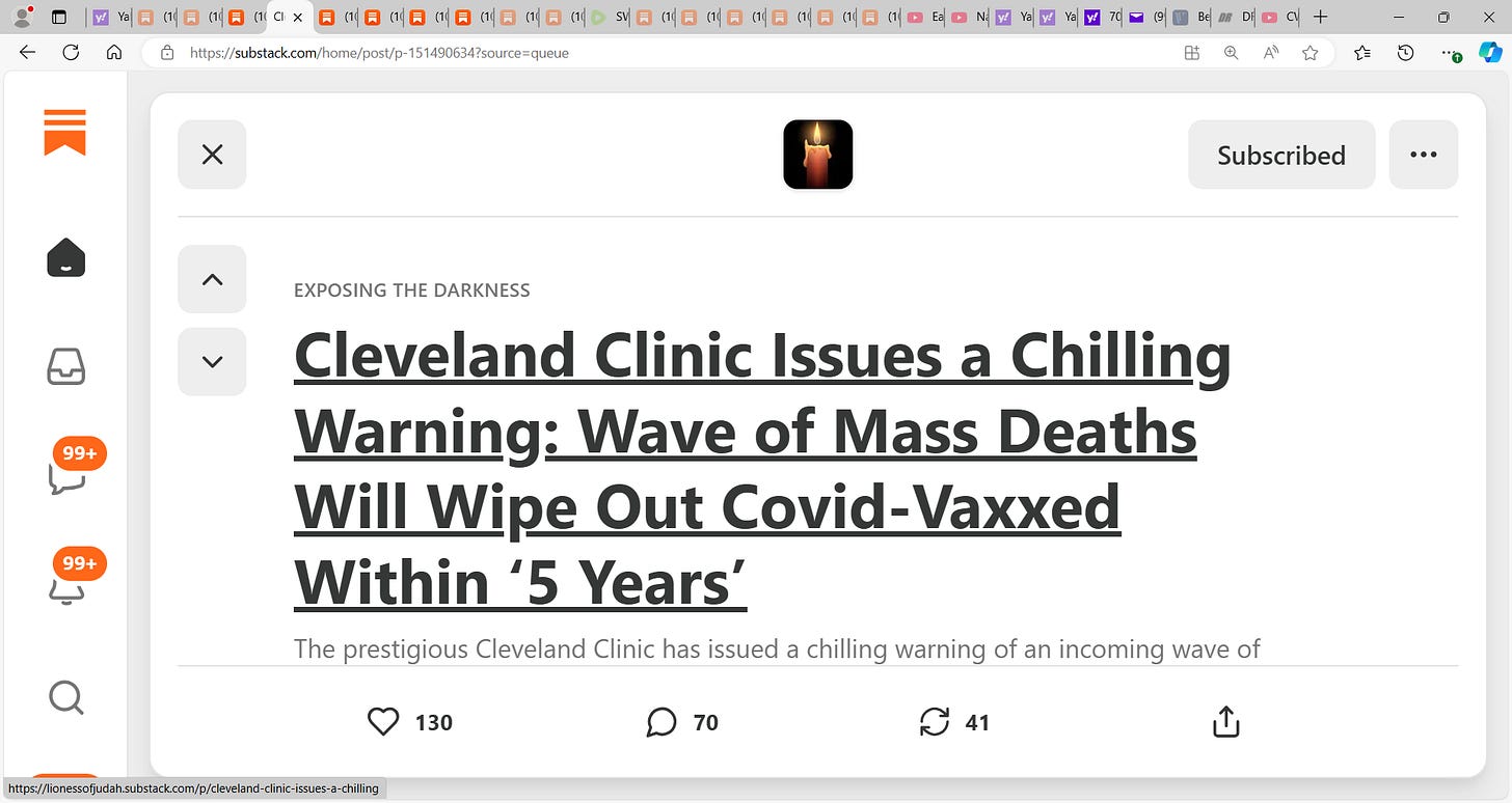 The prestigious Cleveland Clinic has issued a chilling warning of an incoming wave of deaths that will kill off huge numbers of people who received Covid mRNA “vaccines.”