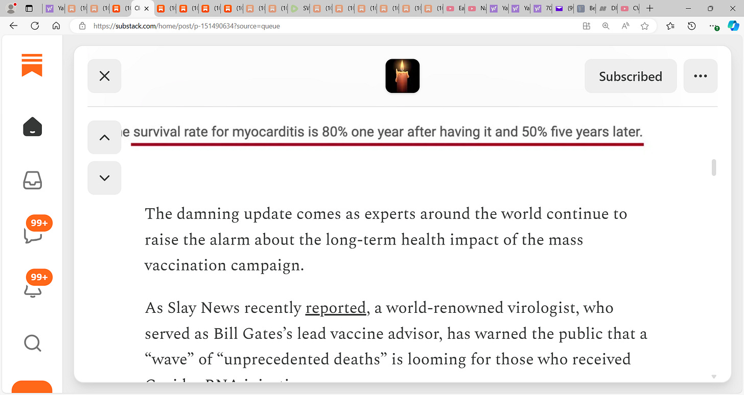 If survival rate after 5 years with MYOCARDITIS is 50% & thus we mean any form of induced MYOCARDITIS? I am focusing on damage to heart muscle due to the Malone Bancel Boural Pfizer et al. mRNA gene