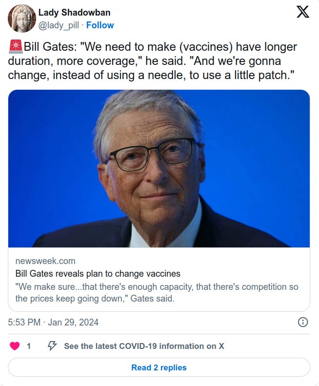 The vaccine racket is losing steam, so billionaire eugenicist Bill Gates has come up with a new design for vaccines that involves "a little patch" being slapped on a person's skin.