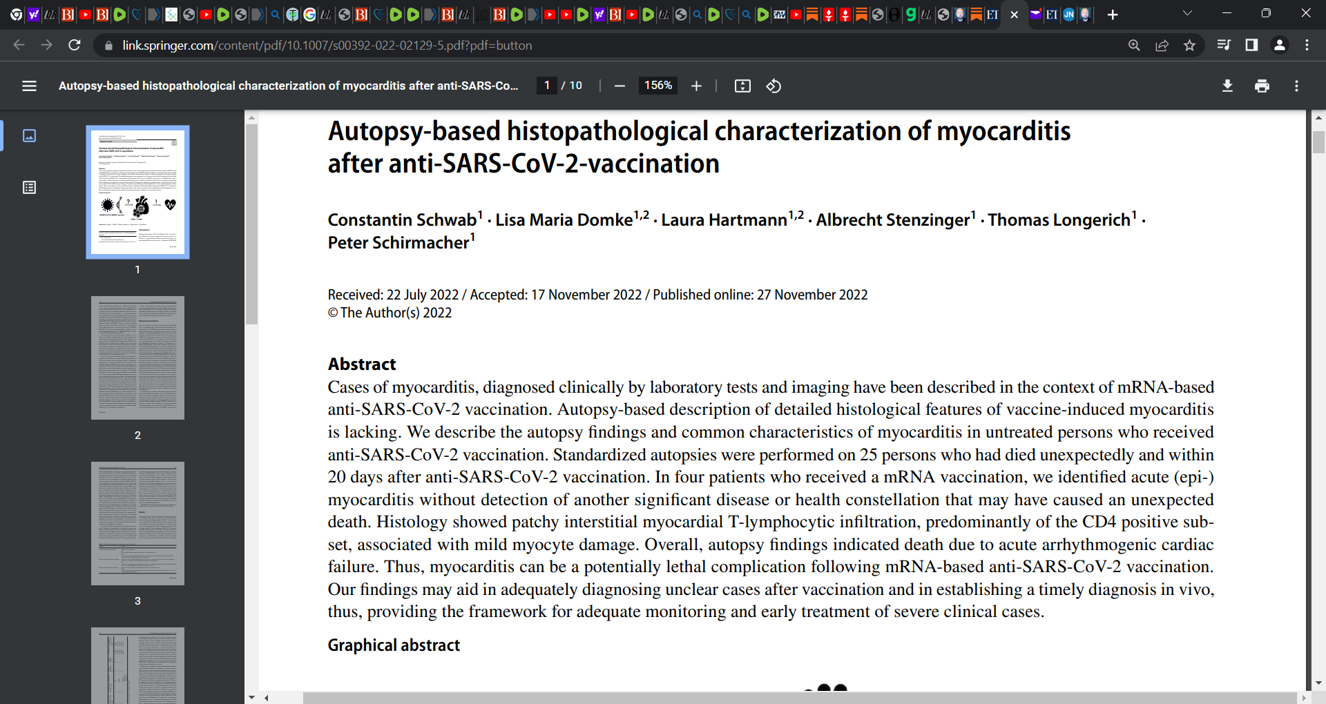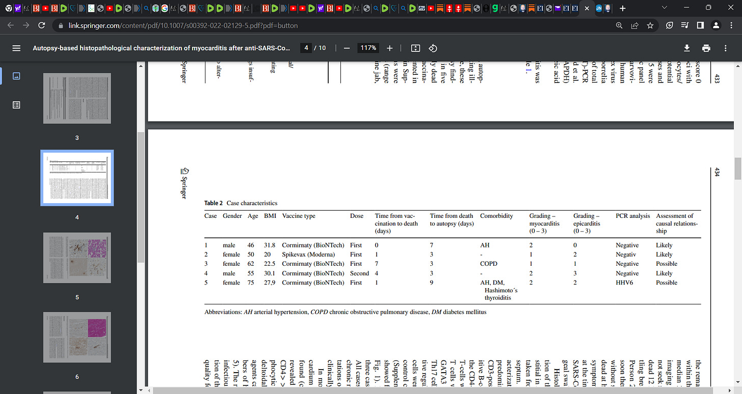 ‘Researchers started with a group of 35, but excluded 10 from further analysis because other causes of death were identified. Of the remaining 25, researchers identified evidence of myocarditis in five.