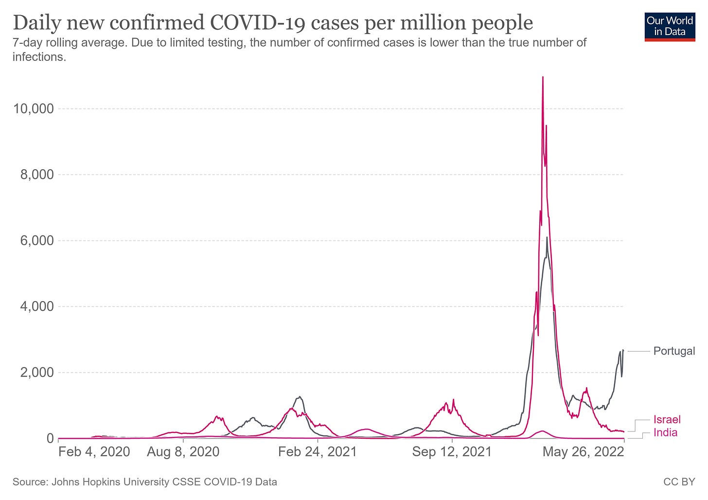 India: why it is so different today, near 90% likely naturally immune/antibodies, one of least vaccinated nations, uses early & prophylaxis drugs; why does Portugal and Israel graph look so different?