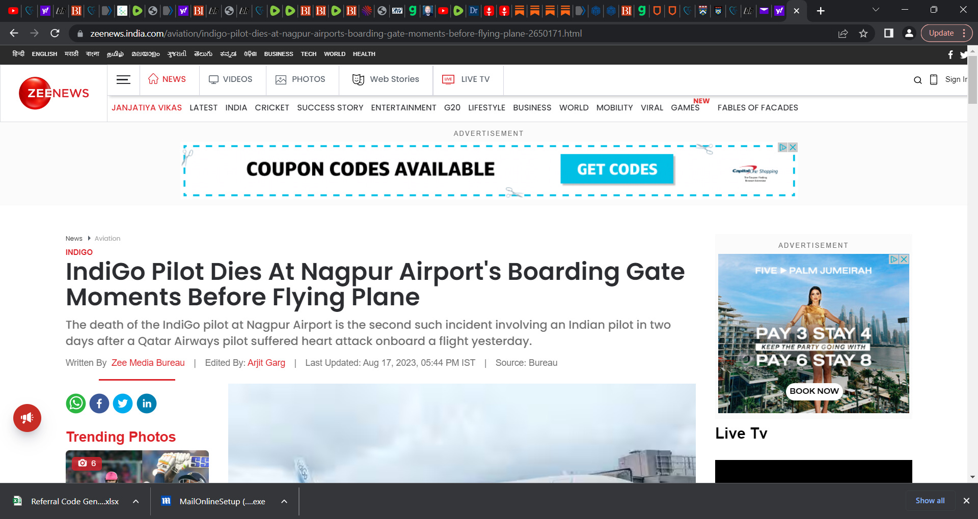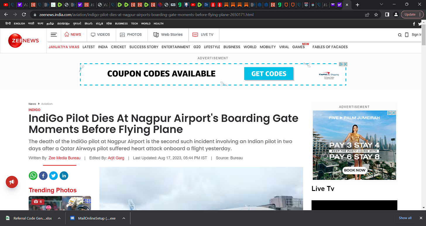 'IndiGo Pilot Dies At Nagpur Airport's Boarding Gate Moments Before Flying Plane'; ssshhh, is this the mRNA technology COVID gene injection vaccine? cardiac arrest again! don't say it ! The death