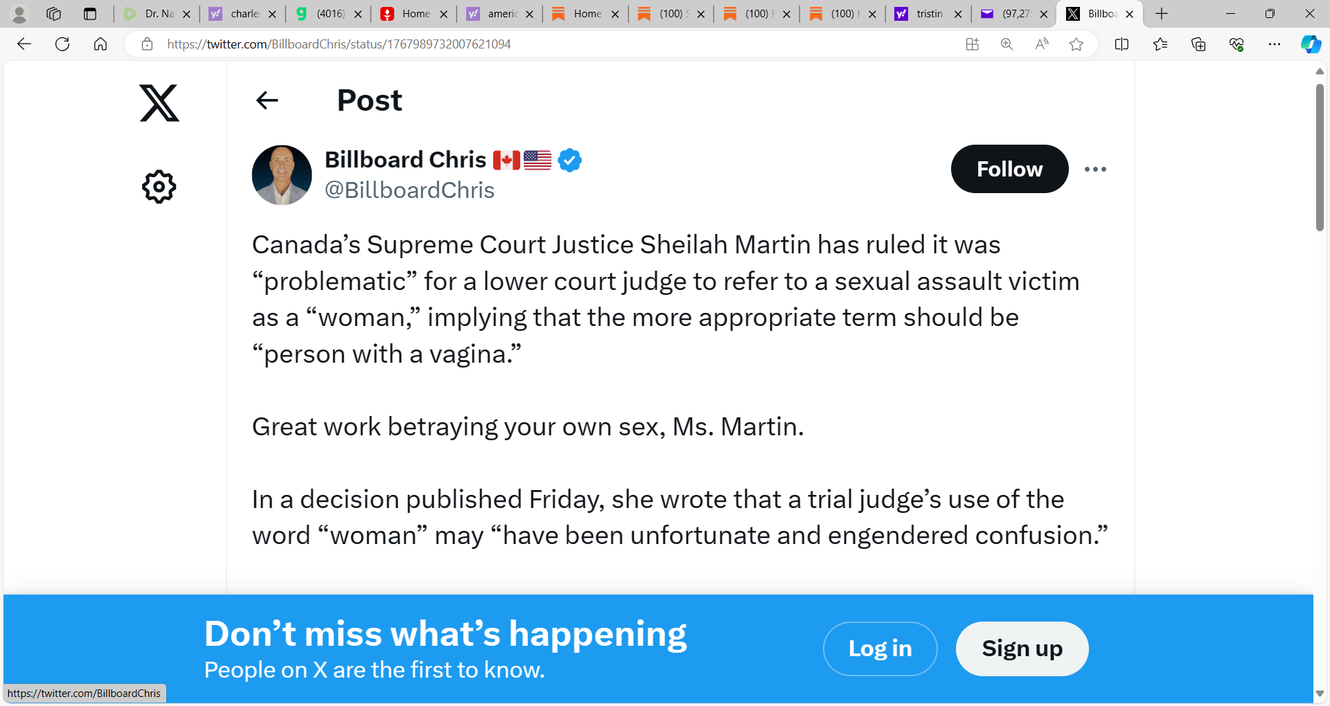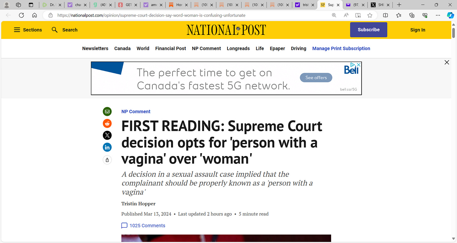 INSANITY: Canada's Supreme Court decision opts for 'person with a vagina' over 'woman'; this is as insane as Bill C-63; Supreme Court judge Sheilah Martin, said a decision in a sexual assault case