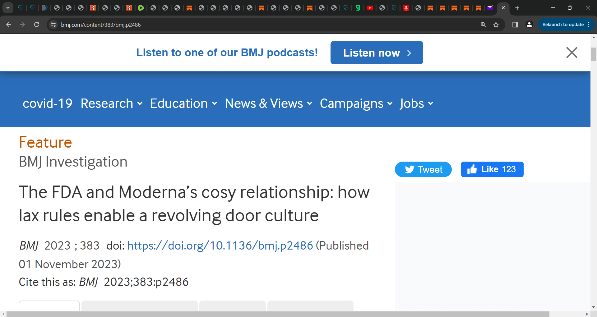'Investigation raises concerns over 'cozy relationship' between the FDA and Moderna'; than concern, it is outright fraud, a con, deceit, reckless of FDA & pharma, IN YOUR FACE 'pay to play' kickbacks