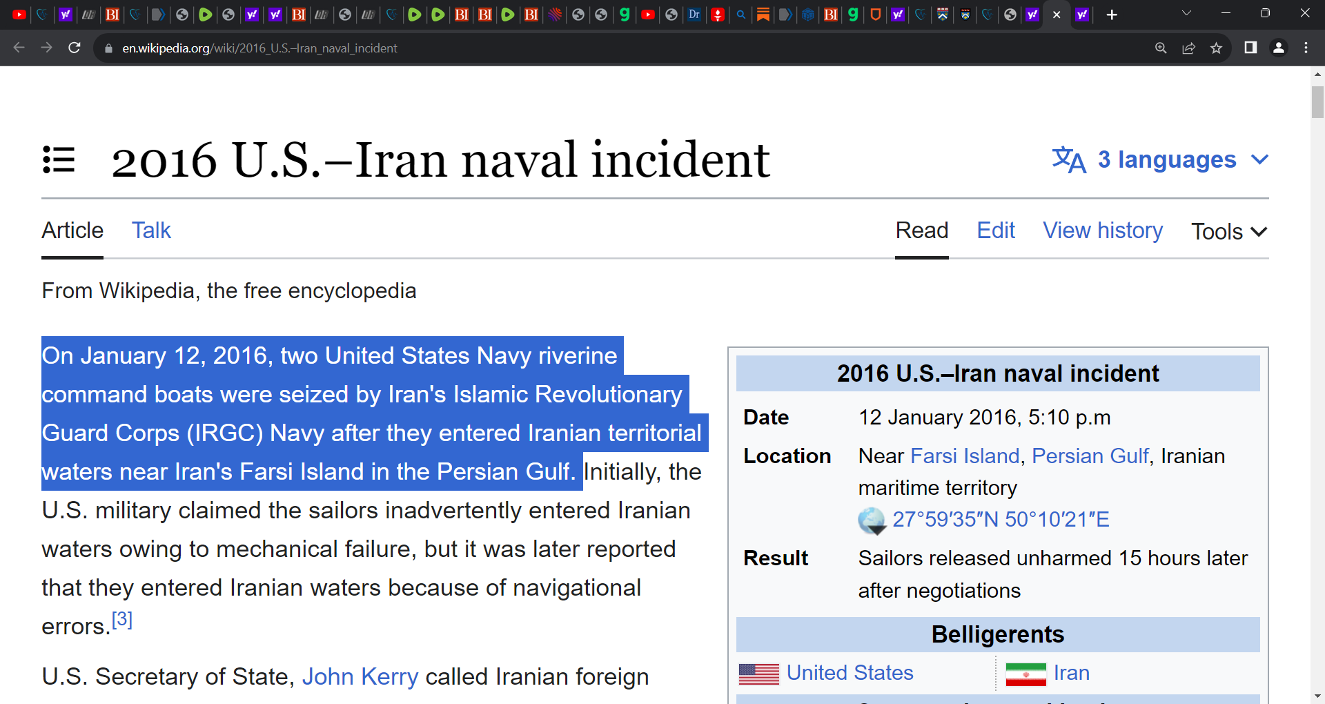 Was that the Navy incident which later showed photos of our guys on their knees with hands behind their heads? Or was that another incident? It's hard for me to keep track of all this ... stuff.