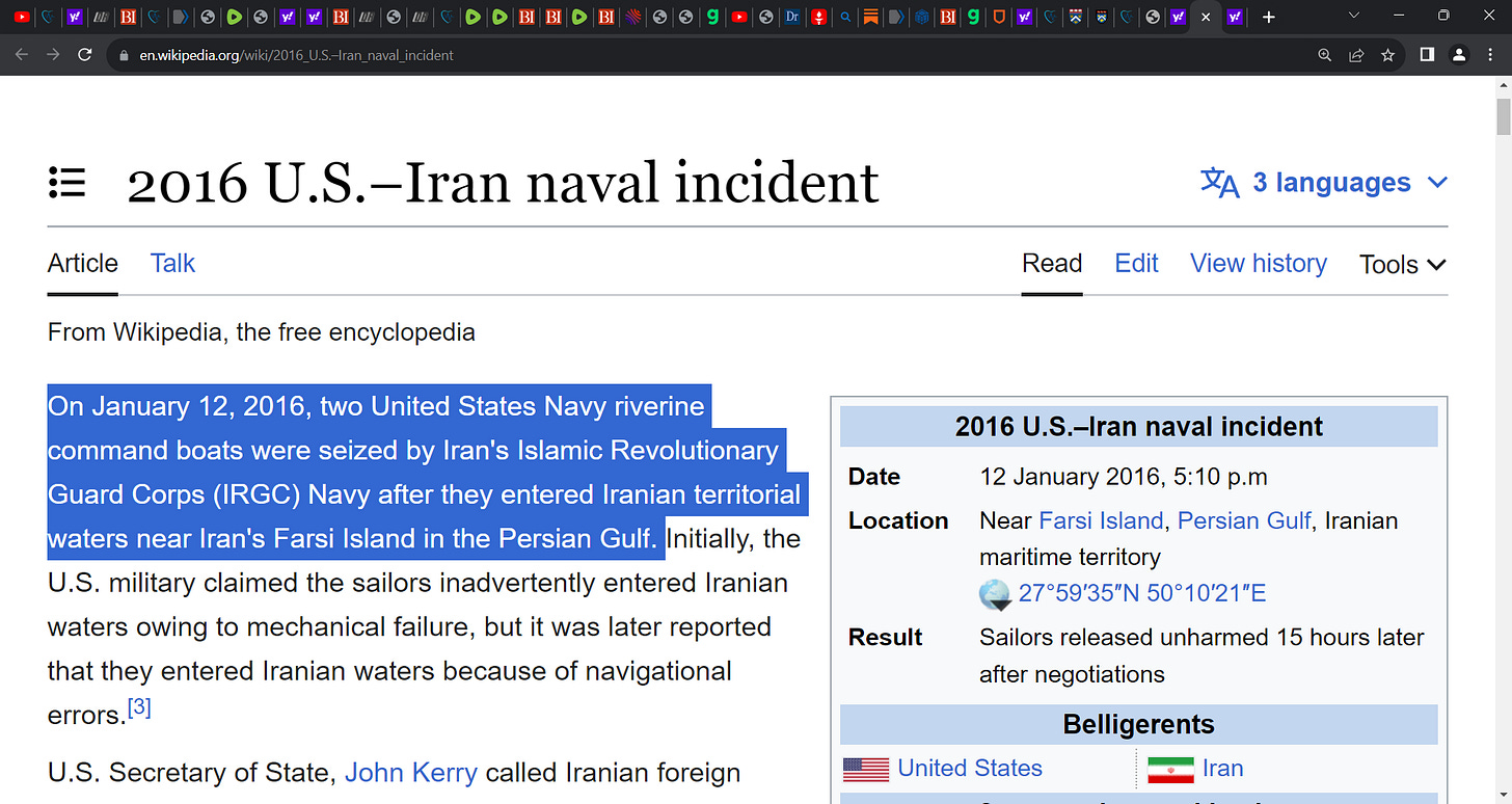 If Iran attacked a US warship then I would give it around 99% odds that the US provoked the attack. I don't think we should be starting Shlt with Iran or Russia. The US should get their warships out of the Strait of Hormuz. Imagine if Iran had warships in the Gulf of Mexico.