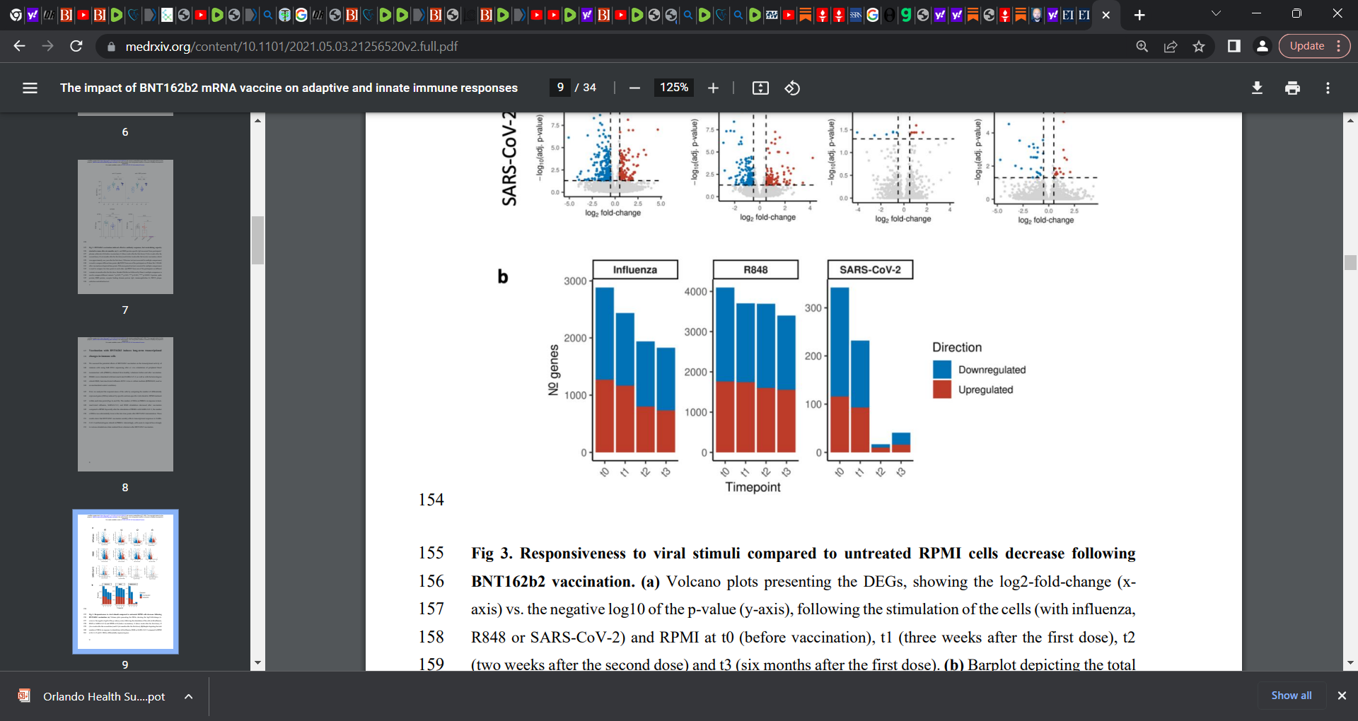 also observed long-term transcriptional changes in immune cells after vaccination, as assessed by RNA sequencing. Additionally, vaccination with Pfizer BNT162b2 modulated innate immune responses as measured by the production of inflammatory cytokines when stimulated with various microbial stimuli other than SARS-CoV-2, including higher IL-1/IL-6 release and decreased production of IFN-α. Altogether, these data expand our knowledge regarding the overall immunological effects of this new class of vaccines.’