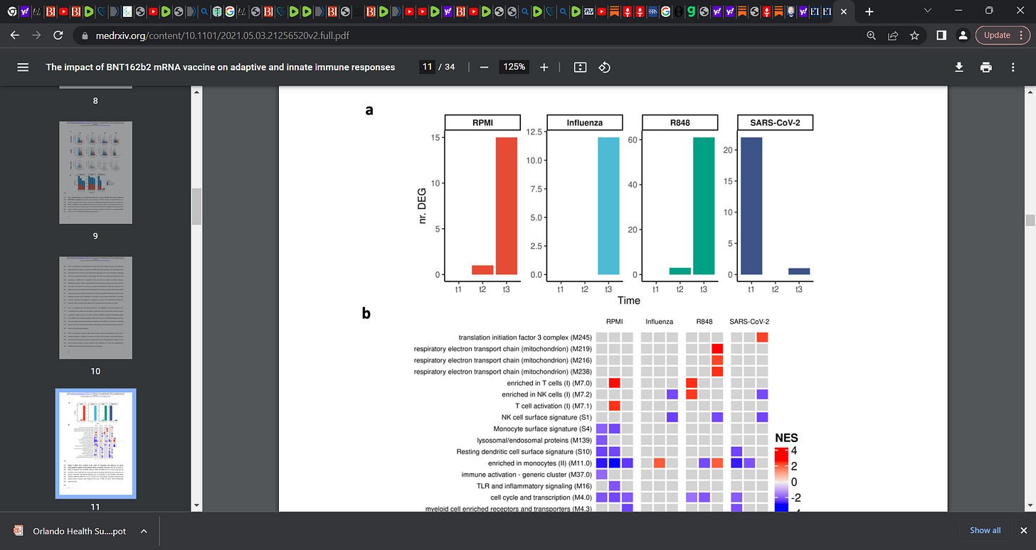actions are suppressed in those COVID vaccinated (with Pfizer); vaccination with Pfizer modulated innate immune responses as measured by the production of inflammatory cytokines; decreased IFN-α