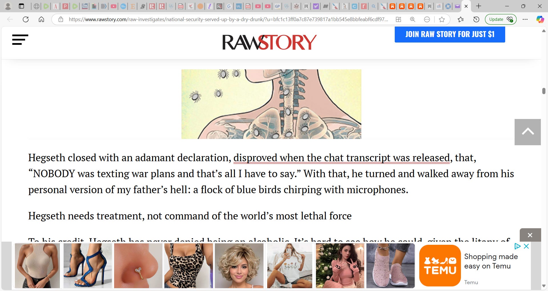 I start by saying I do not know Hegseth. I am opining based on media reports. Yet he admitted he has/had a drinking problem and FOX news staff on anonymity (many of them) said he would come onto the FOX set drunk. Hegseth did not say when we saw the confirmation hearings if he is recovered or sought such. He did say he would stop drinking if confirmed. ‘IF’ confirmed and this was troubling IMO. If Hegseth needs help, he should get it. I do not know but to say you will ~promise not to drink on the job if confirmed itself was troubling. Fundamentally he is likely a good man and maybe better than many of us, but there are serious questions now. Moreover, the role he is entrusted with today affords for none of these cockups. None! And we must not keep our heads in our asses afraid to ask as we are afraid to upset Trump or his orbit. Holding out for jobs and/or money and/or a call out etc. Trump needs us to hold his feet to the fire. Silence and spin will not do it. We must demand the topmost very best from Trump and his people and we the American people are not stupid. This has not yet been dealt with.