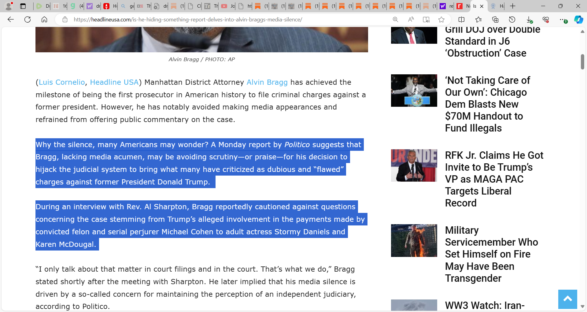 avoiding scrutiny—or praise—for his decision to hijack the judicial system to bring what many have criticized as dubious and “flawed” charges against former President Donald Trump....hhhmmm