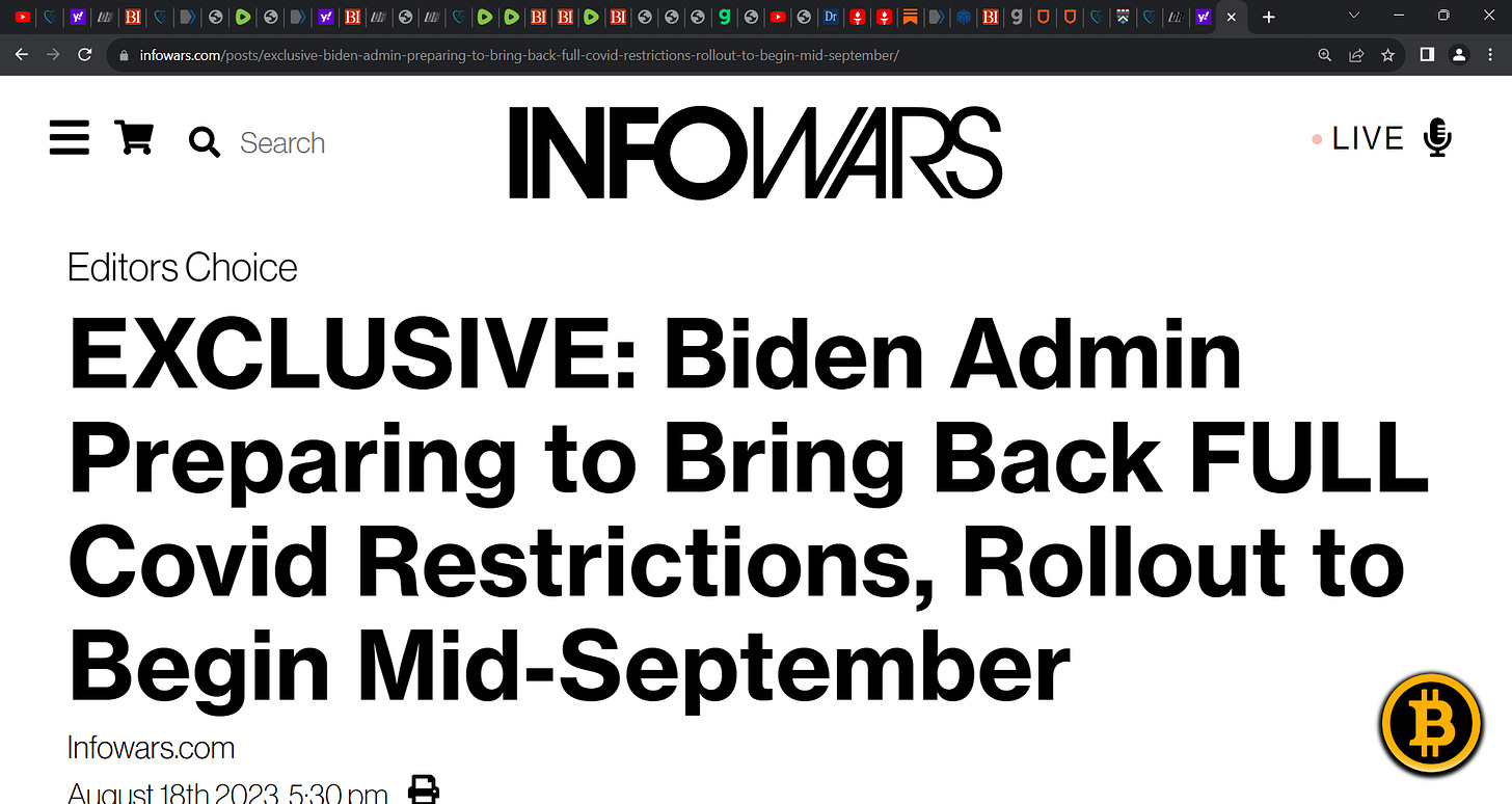 Well, ‘whistleblowers from the TSA and Border Patrol have raised the alarm to Infowars that the Biden administration is setting the stage for full Covid lockdowns that will begin with incremental restrictions like masking TSA employees in mid-September.