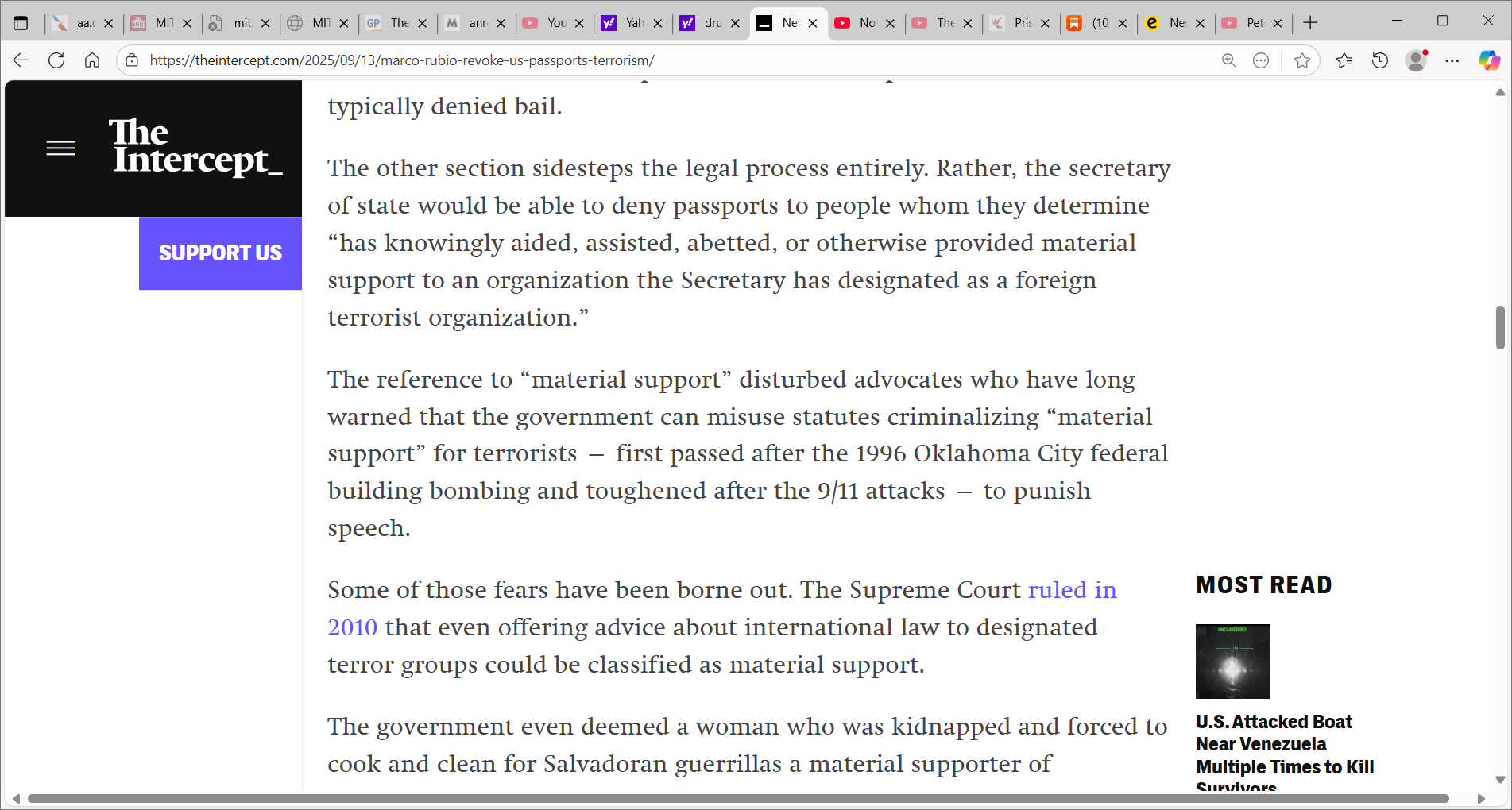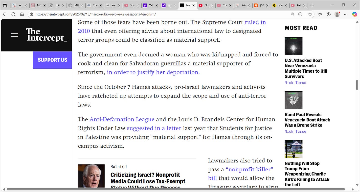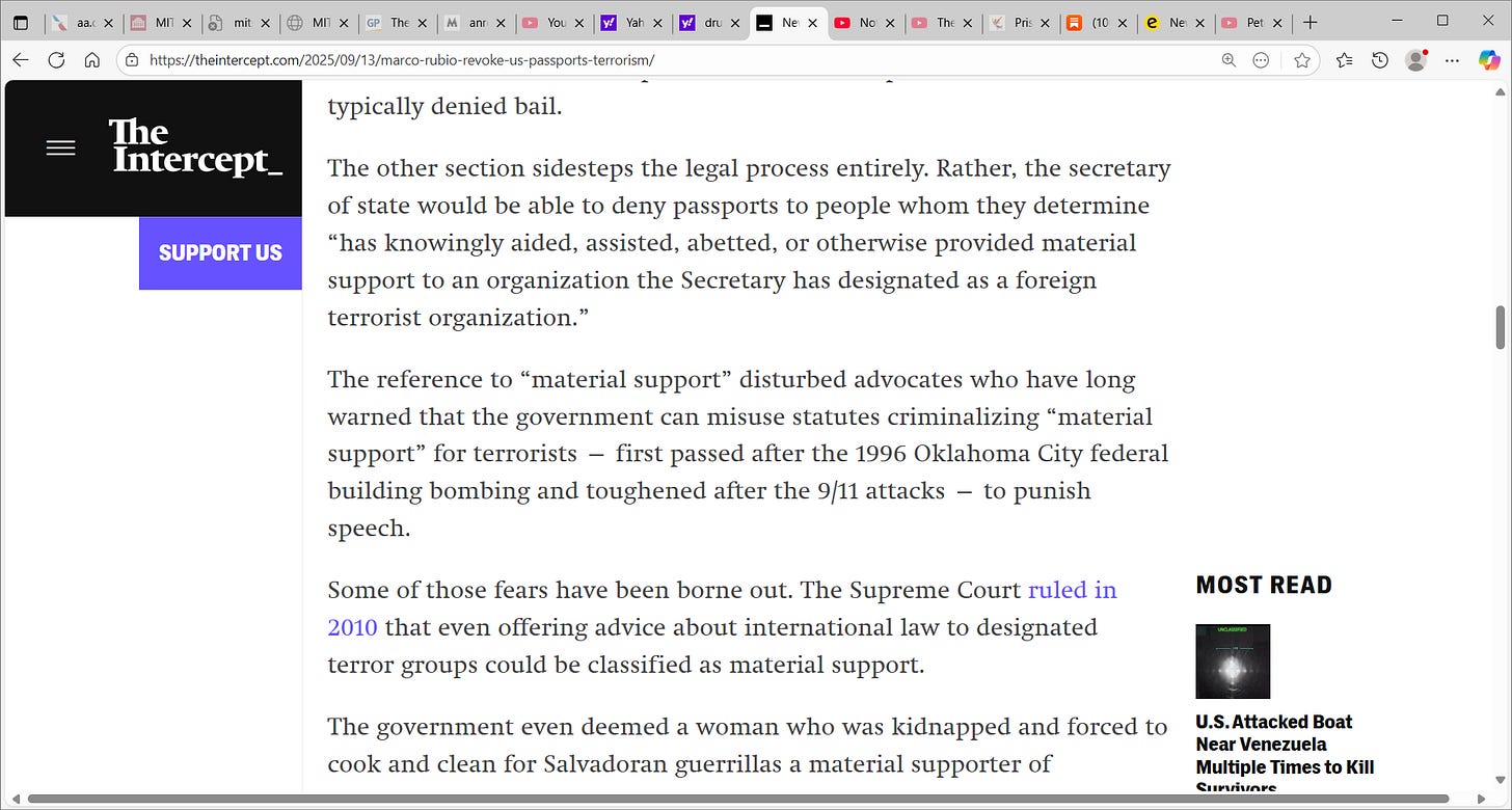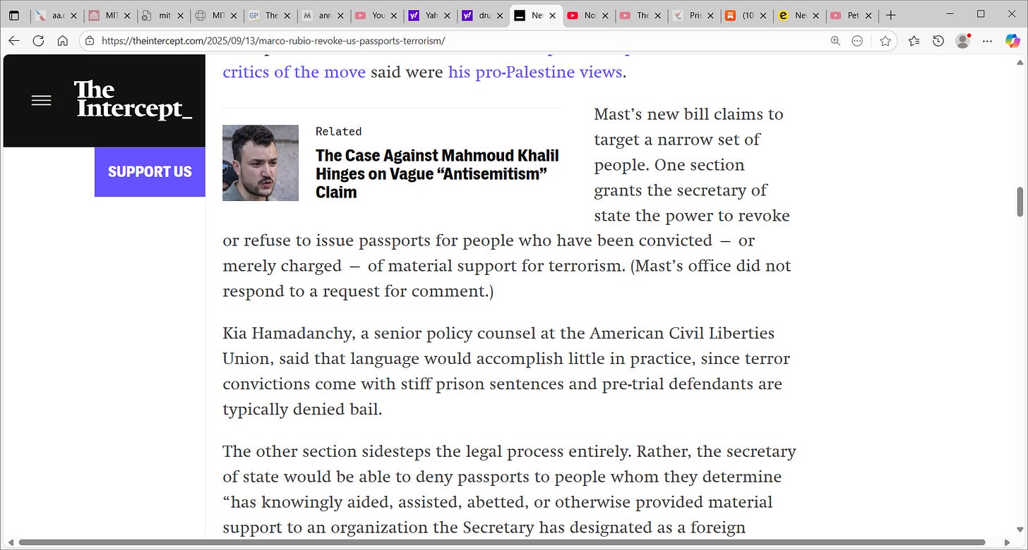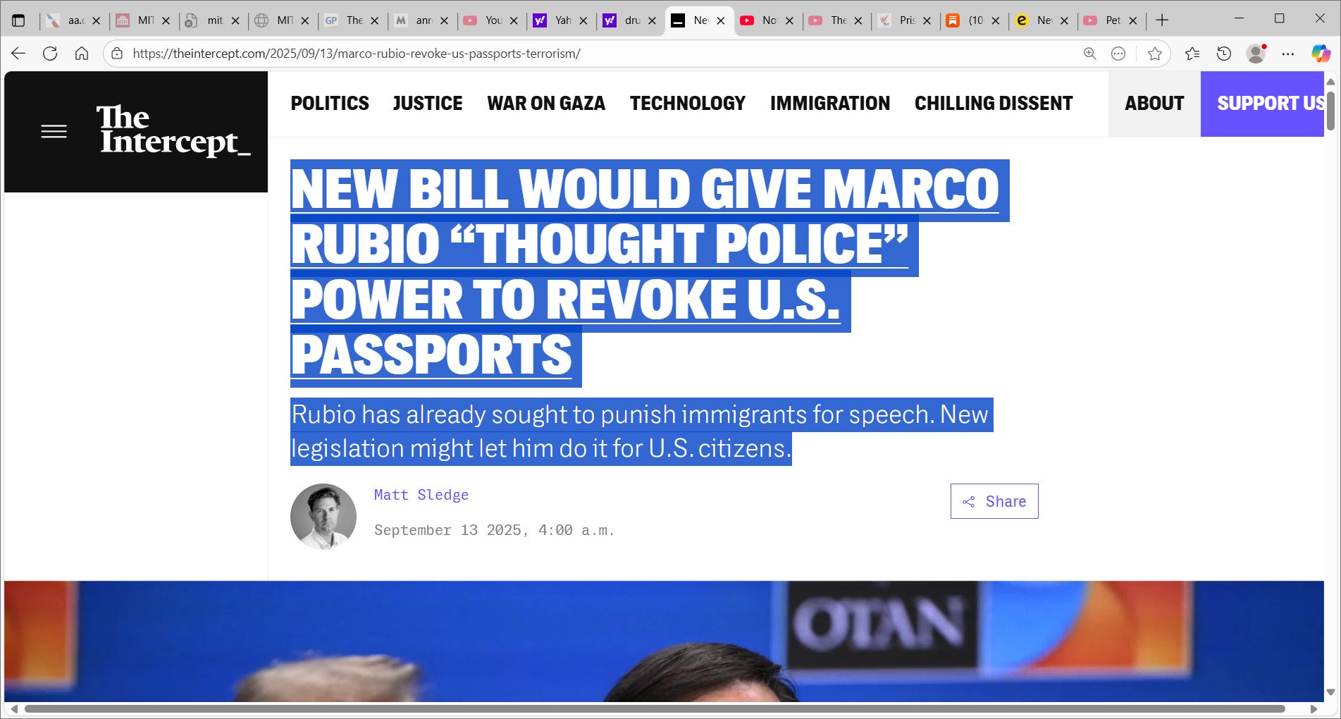 critical; "New Bill Would Give Marco Rubio “Thought Police” Power to Revoke U.S. Passports Rubio has already sought to punish immigrants for speech. New legislation might let him do it for U.S.