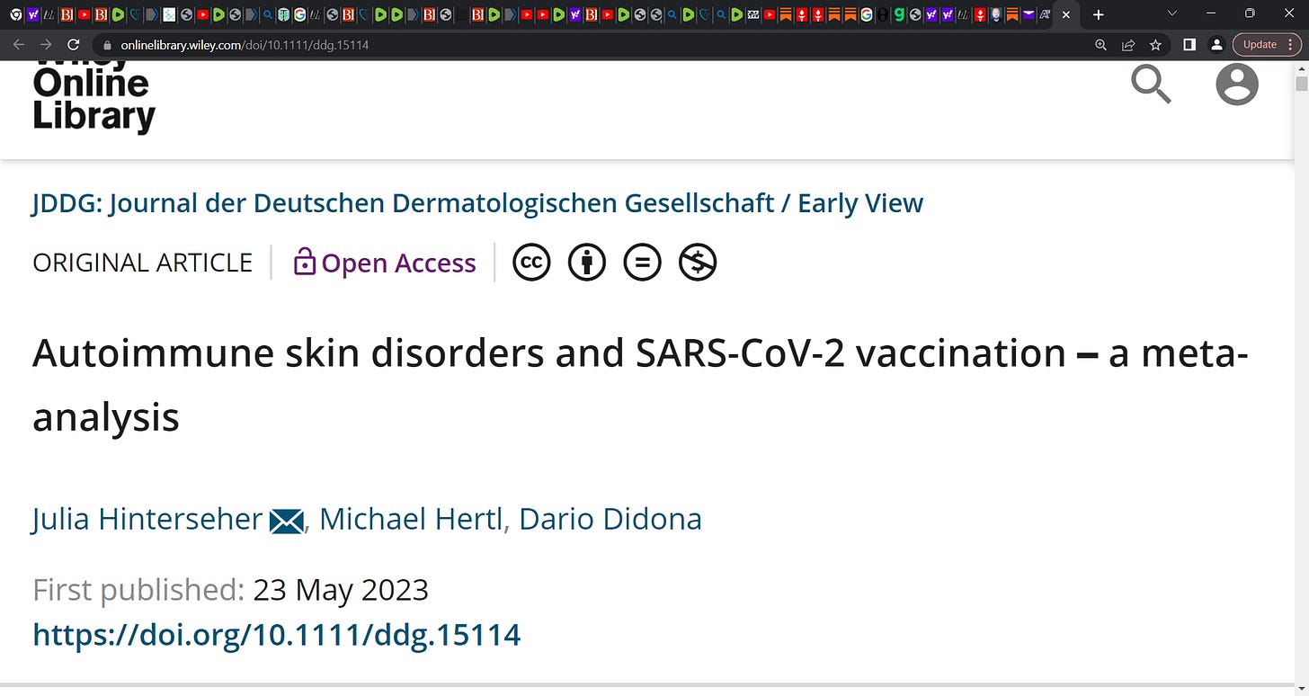 Is there a link between Autoimmune skin disorders and Malone, Kariko, Weissman et al.'s COVID mRNA technology based gene vaccination (Pfizer & Moderna) & other platforms? Yes, study indicates a link
