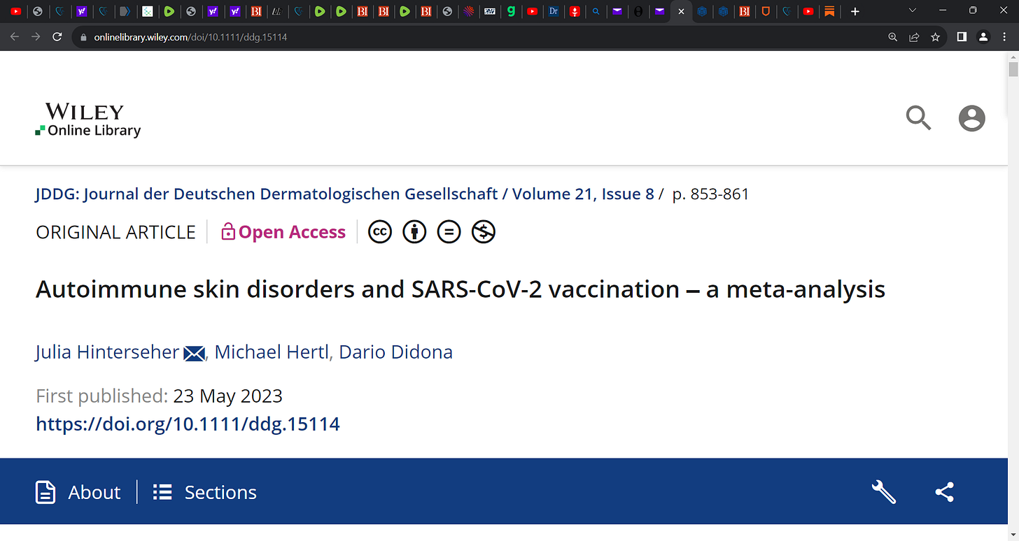 Is there a link between COVID (SARS-COV-2) gene mRNA technology vaccination & new onset or worsening of inflammatory and autoimmune skin diseases? Yes! Hinterseher et al.'s meta-analysis shows us
