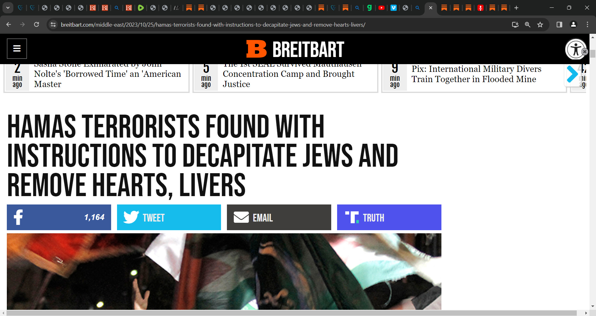 Is this true as reported in Breitbart? 'Hamas Terrorists Found with Instructions to Decapitate Jews and Remove Hearts, Livers'; if so then this is Bataclan 2.0, that depth of depravity & sub-human