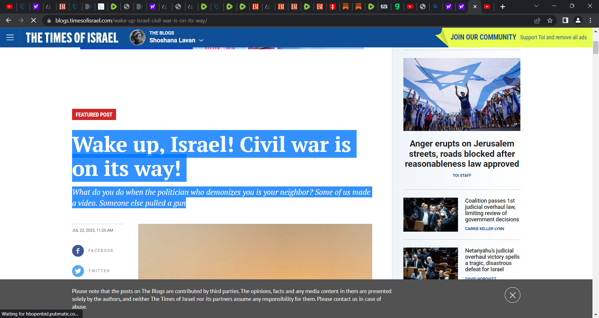 https://blogs.timesofisrael.com/wake-up-israel-civil-war-is-on-its-way/
