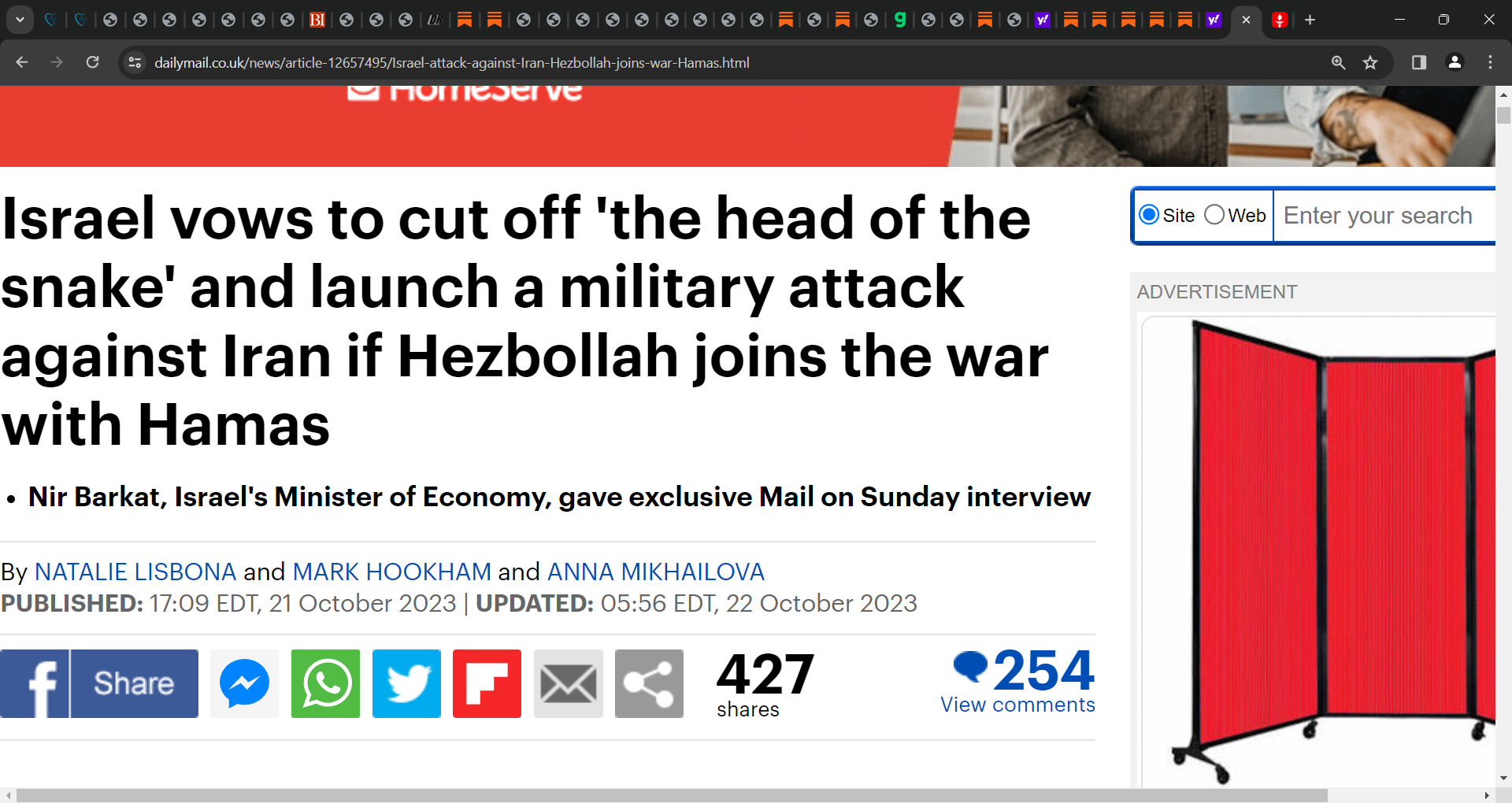 ‘In an exclusive interview with The Mail on Sunday, Nir Barkat, Israel's Minister of Economy, warned that Iran's Ayatollahs will be 'wiped off the face of the earth' should Hezbollah, their proxy terror group in Lebanon, attack Israel.