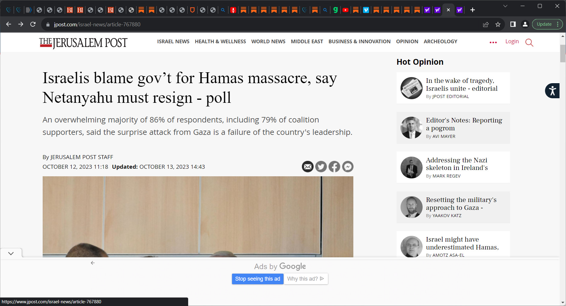 Israelis blame gov’t for Hamas massacre, say Netanyahu must resign - poll; An overwhelming majority of 86% of respondents, including 79% of coalition supporters, said the surprise attack from Gaza is