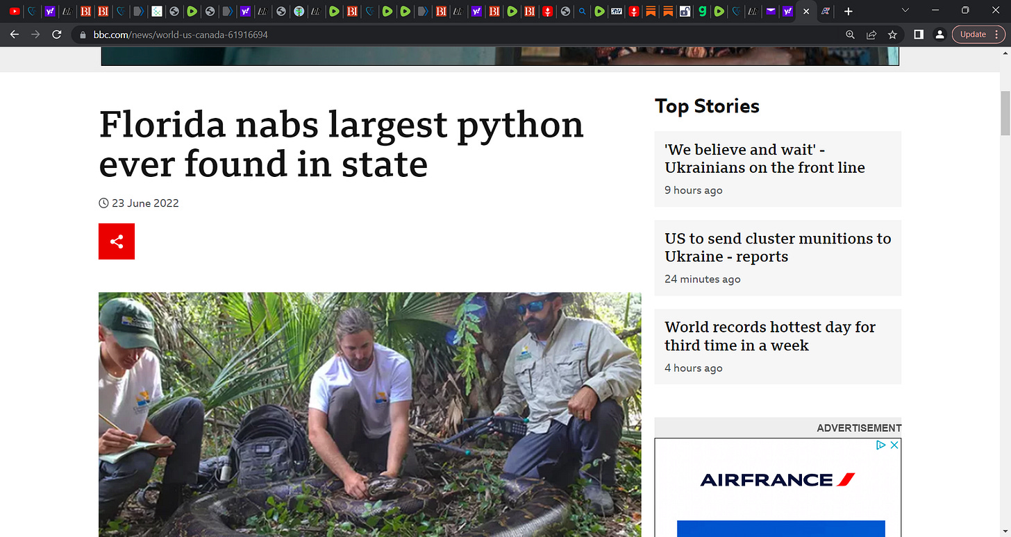 It is not just in Florida with problems of alligators killing people and pythons, sharks now and we see in New York?