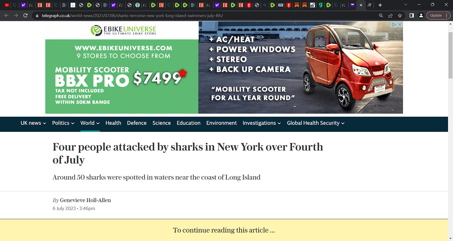 Four people attacked by sharks in New York over Fourth of July Around 50 sharks were spotted in waters near the coast of Long Island; woman and man seperately swallowed whole by snakes