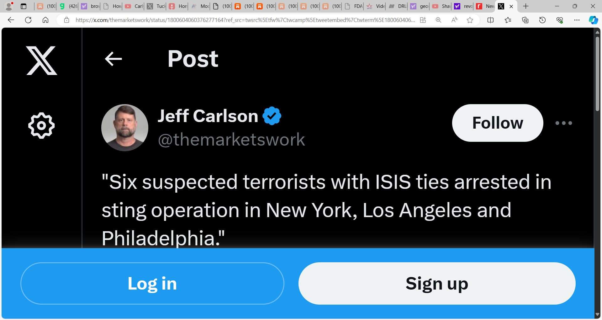 into USA: "Six suspected terrorists with ISIS ties arrested in sting operation in New York, Los Angeles and Philadelphia." "A wiretap revealed one of the now-arrested individuals was talking bombs...