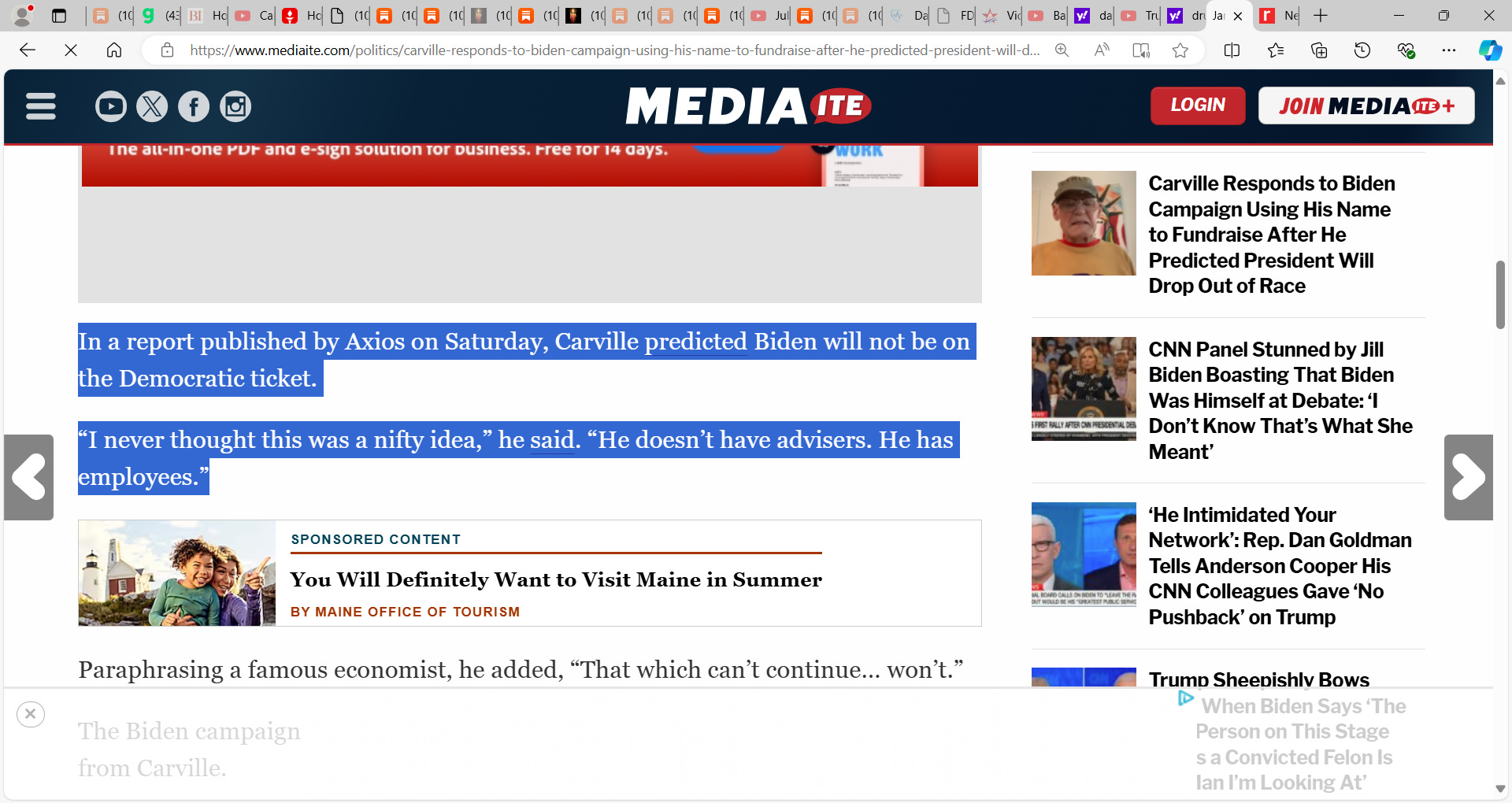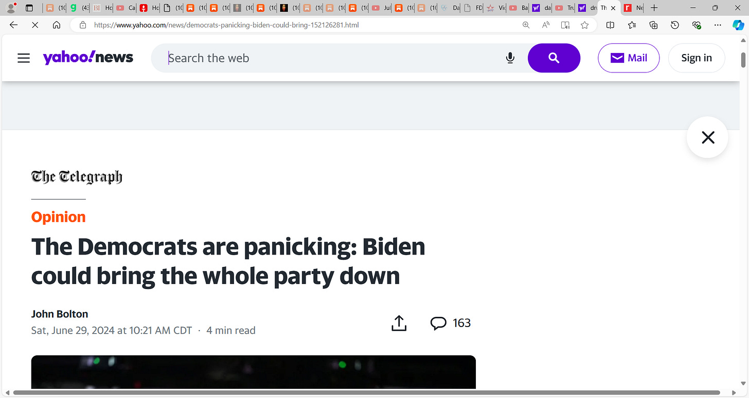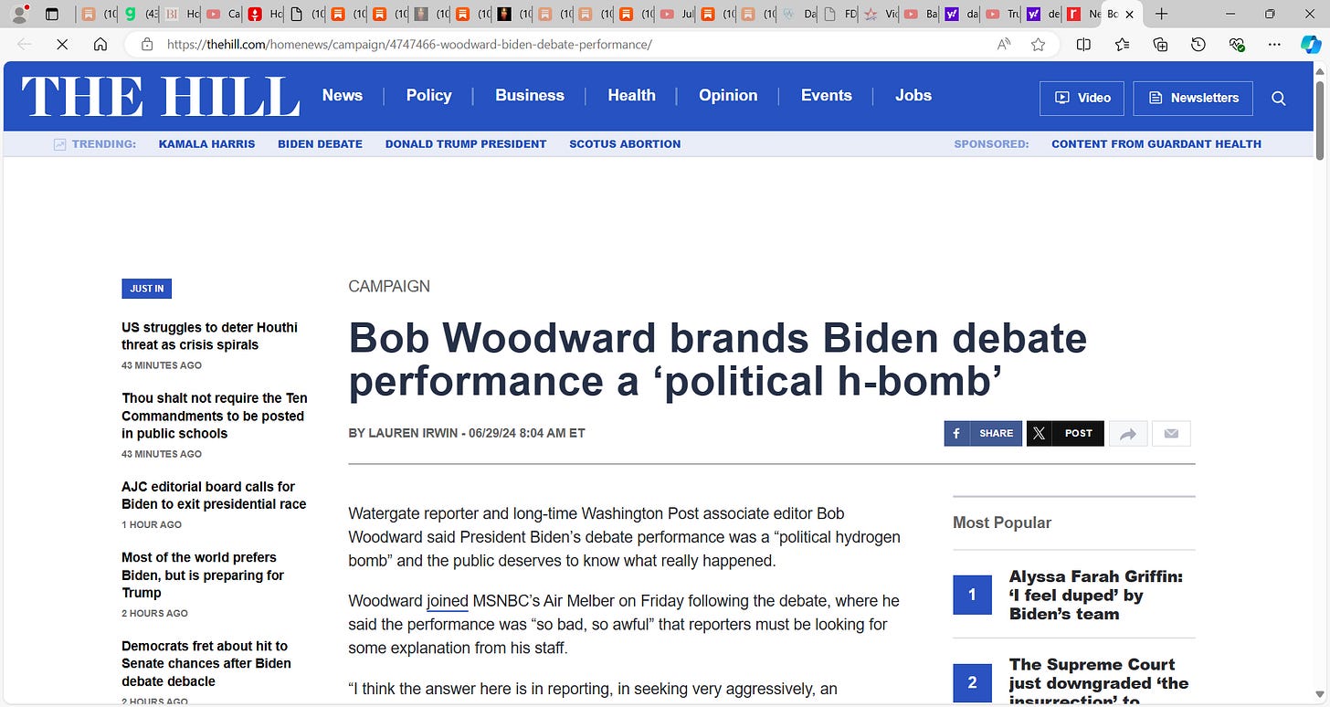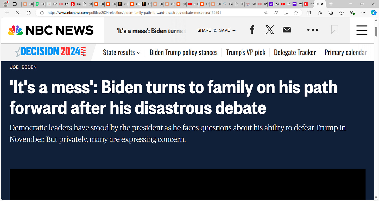 It is over for Biden, the news keeps getting bad, he cannot recover; word is that Biden will talk future of reelection campaign with his family at Camp David today; 'It's a mess': Biden turns to