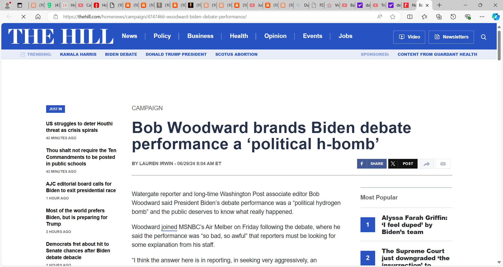 family on his path forward after his disastrous debate; mouth agape open; democrats fear he could bring entire party down; Woodward brands Biden debate performance a ‘political h-bomb’