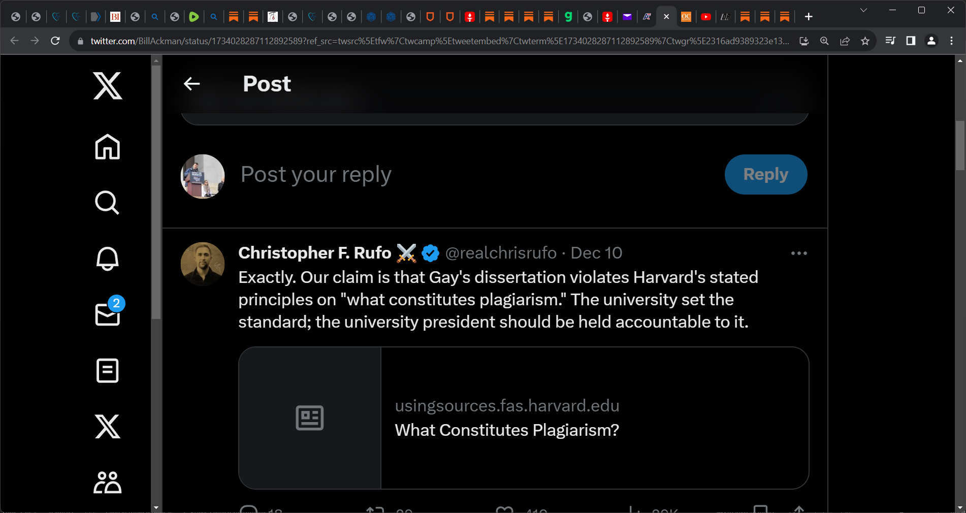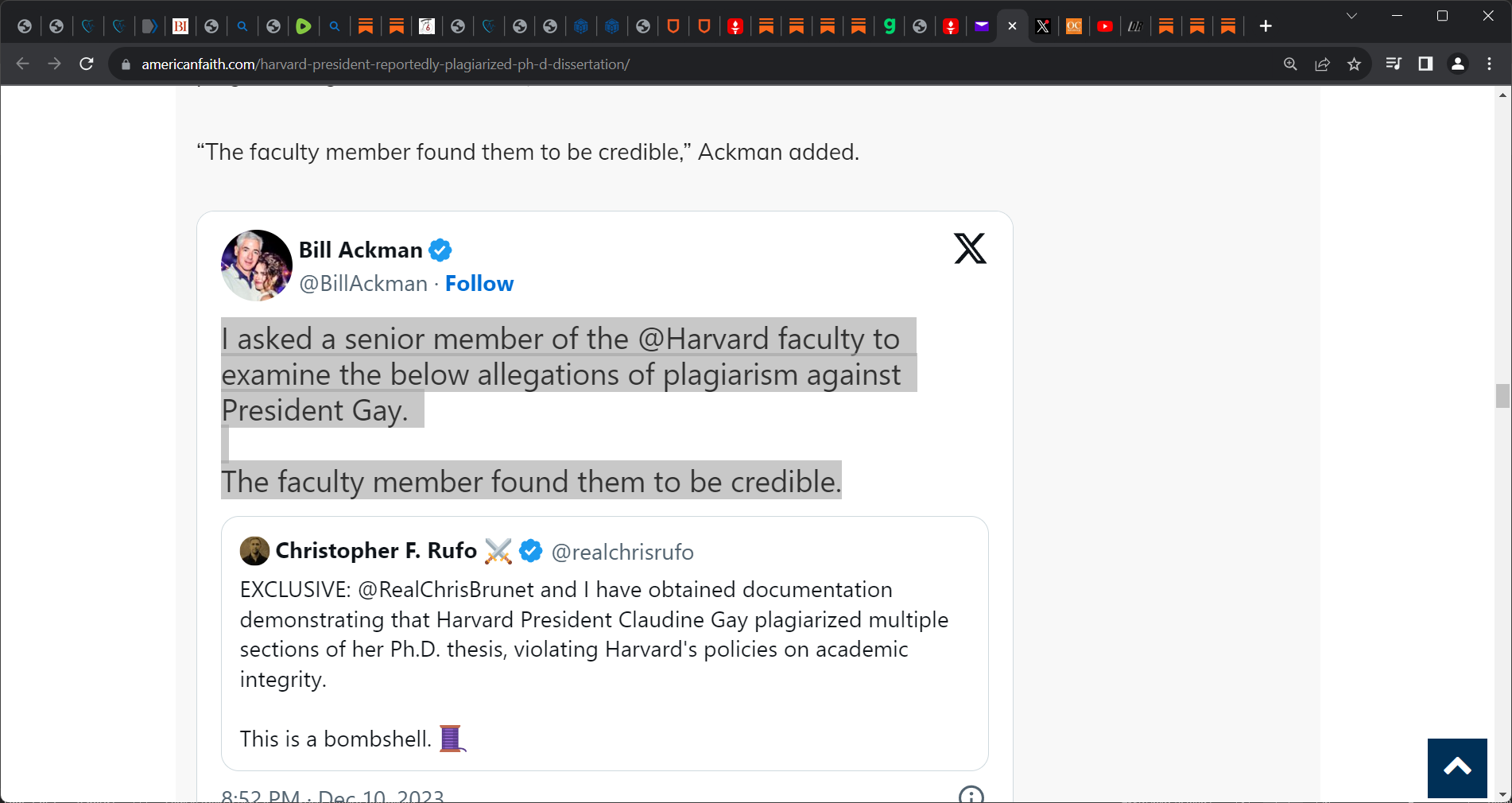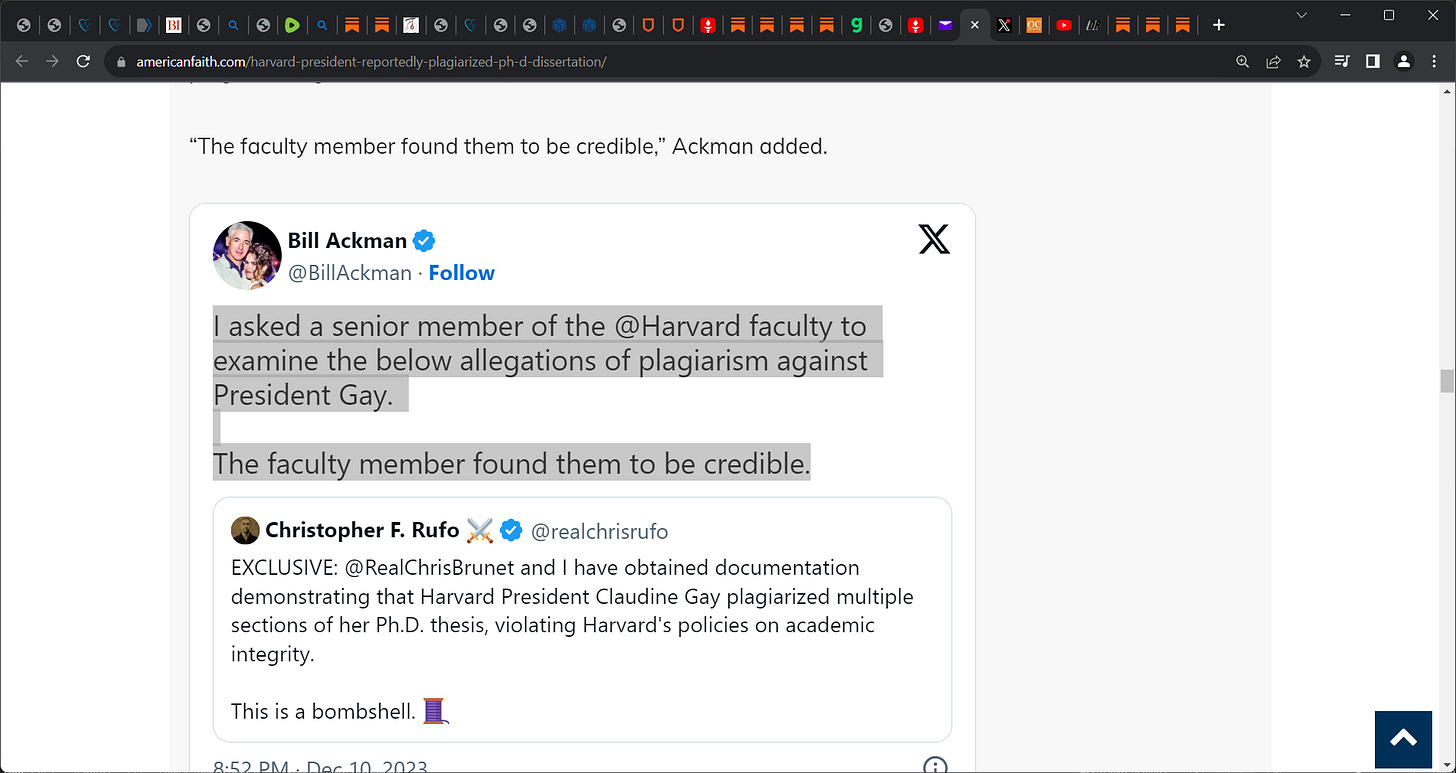 down...Ackman: "I asked a senior member of the @Harvard faculty to examine the below allegations of plagiarism against President Gay. The faculty member found them to be credible.