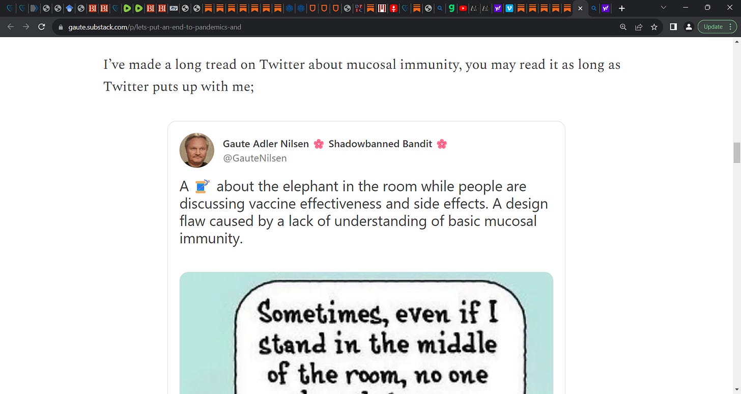 It's MUCOSAL IMMUNITY, stupid, your MUCOSAL IMMUNITY, the GUT 1st; MUCOSAL compartment can deal with near ALL airborne viruses that land there FIRST & faces IgA (sIgA) mucosal antibodies