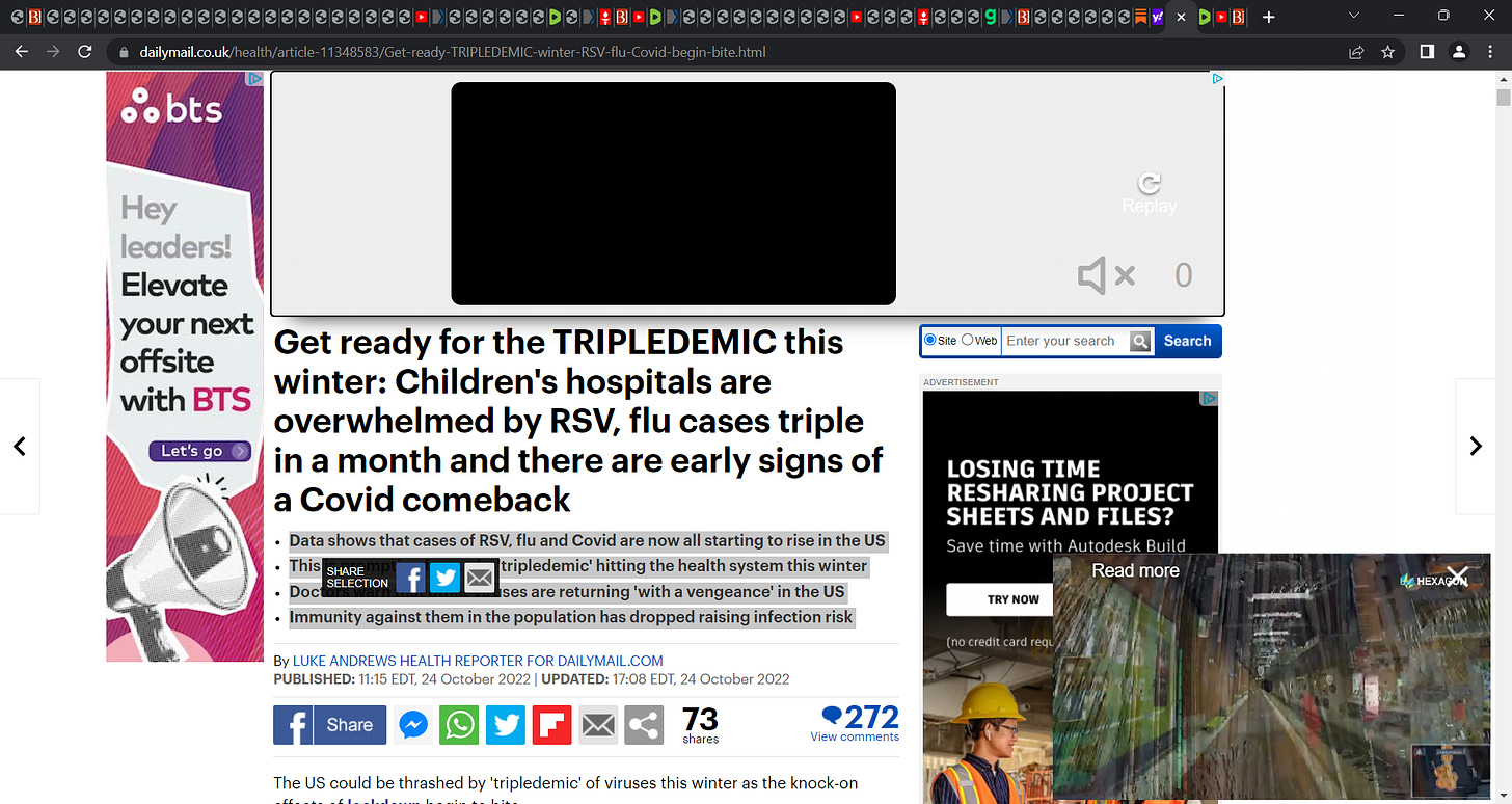 I/we warned them, Geert told them: "Get ready for the TRIPLEDEMIC this winter: Children's hospitals are overwhelmed by RSV, flu cases triple in a month & there are early signs of a Covid comeback"