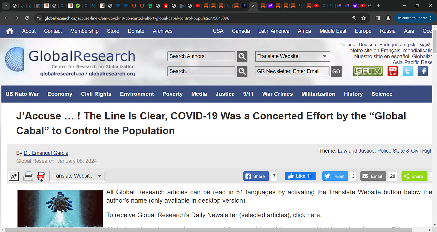J’Accuse … ! The Line Is Clear, COVID-19 Was a Concerted Effort by the “Global Cabal” to Control the Population; by Dr. Emanuel Garcia; "there never was a genuine pandemic, there never was a need to