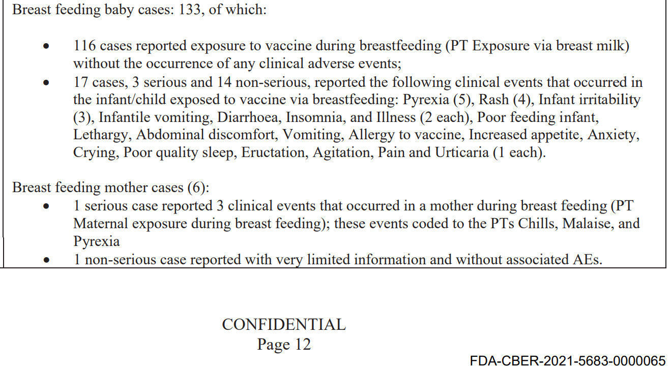 Pfizer’s own documents report that the rate of adverse events in babies who are breastfeeding from COVID-19 mRNA vaccinated mothers is 13% and serious adverse events occur in 2% of babies, including two baby deaths recorded in VAERS.