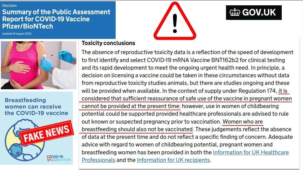 This was confirmed by the UK Government on August 16 2022, when it declared that “Women who are breastfeeding should also not be vaccinated” (click here)