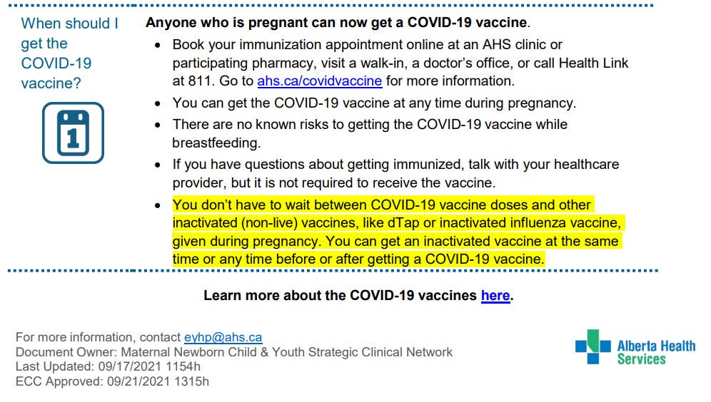 AHS advises Albertans: “There are no known risks to getting the COVID-19 vaccine while breastfeeding”.