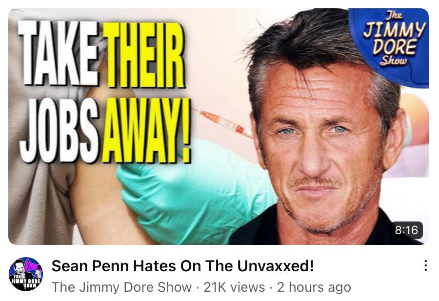 JAMES HILL, MD, superb substack piece I bring up: "Why do they (celebrities) say you should die if unvaccinated? Why did people e.g. Howard Stern, David Frum, Sean Penn etc. say my family should die