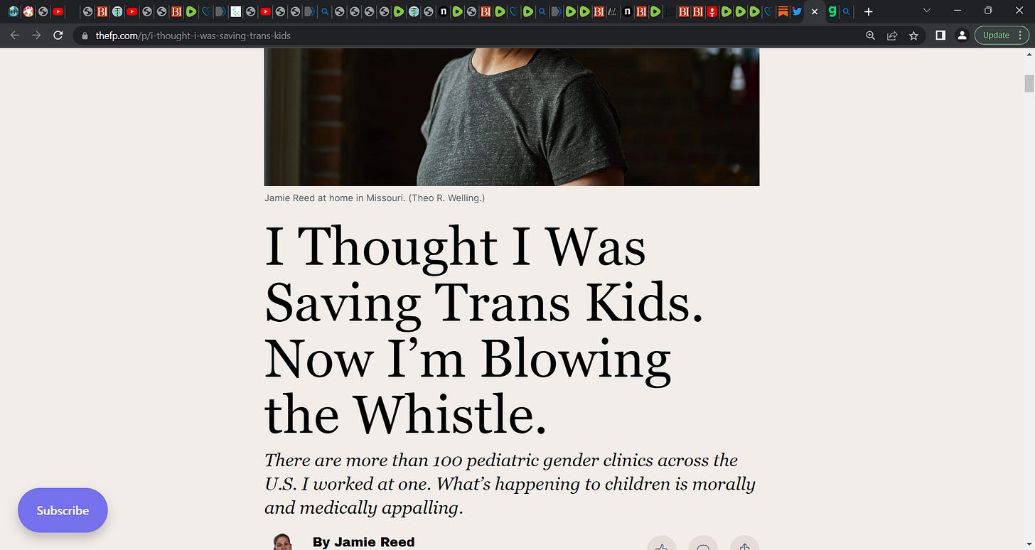 Jamie Reed: 'There are more than 100 pediatric gender clinics across the U.S. I worked at one. What’s happening to children is morally and medically appalling.' We must save these trans children NOW!