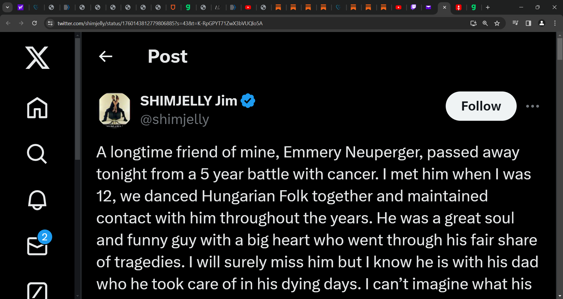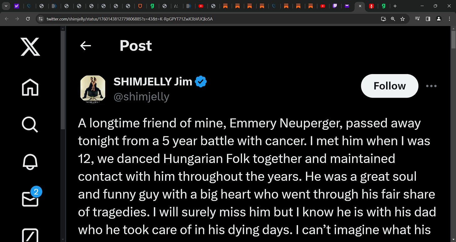 The 4 doctors closed the door to the office and told him the shots would kill him instantly or shortly after he takes it. They were very concerned they told him about safety. He relayed this to Jim as they were close childhood friends. They told him they would not take the shots as doctors and they refused to be part of the global experiment. These cancer doctors (world renowned I cannot name them here) somehow knew, the mRNA shots were problemtic and possibly deadly. So Emmery never got any shots.