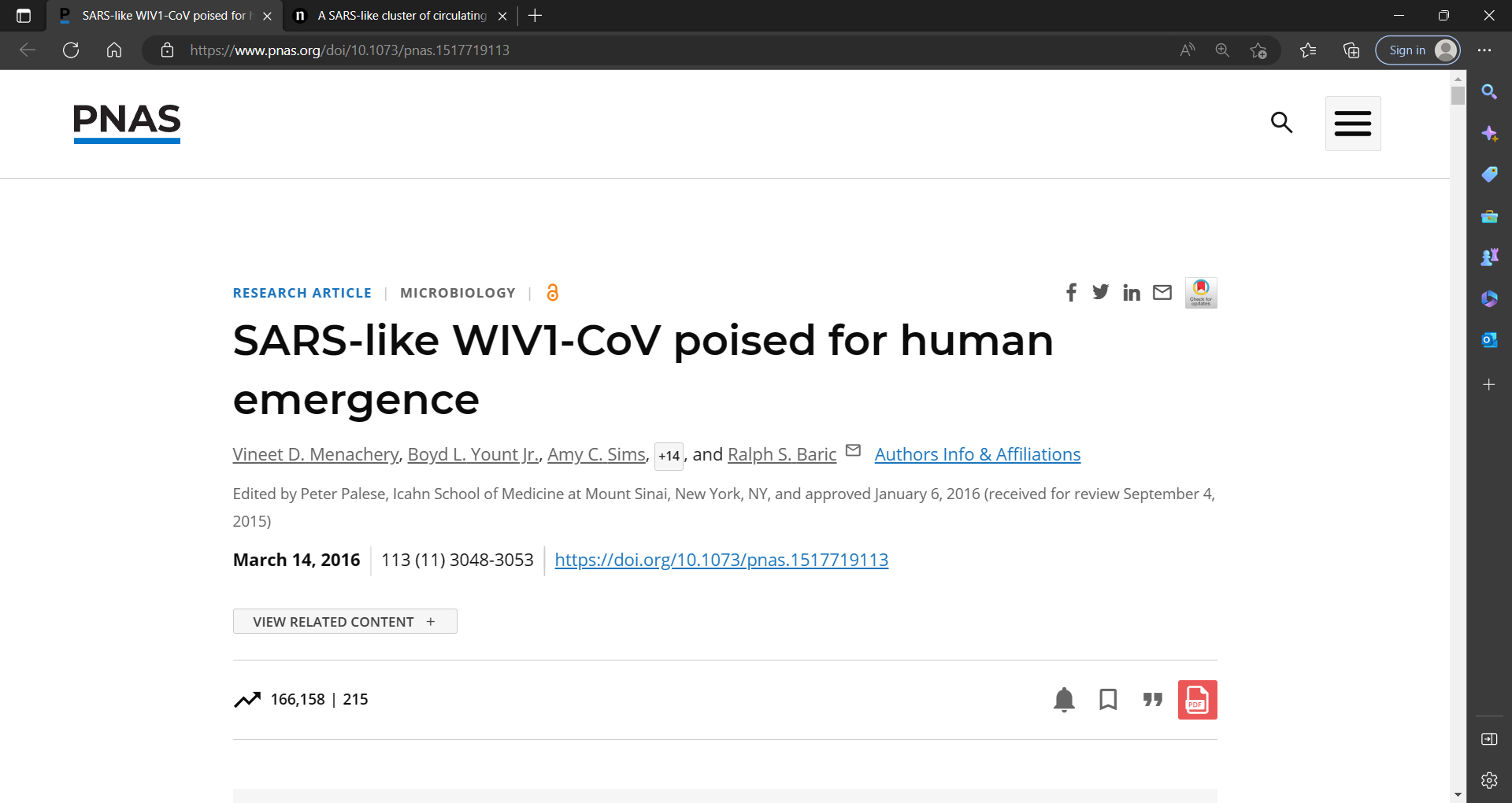 SARS-like WIV1-CoV poised for human emergence | PNAS