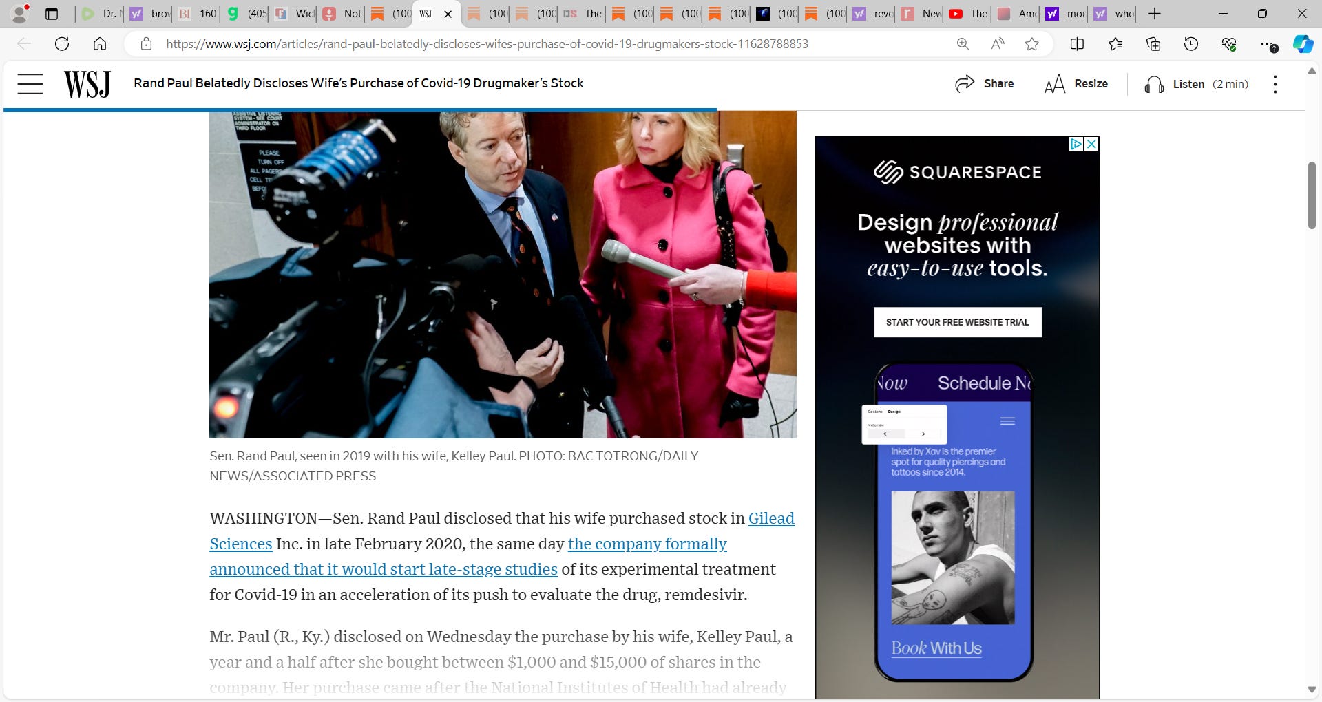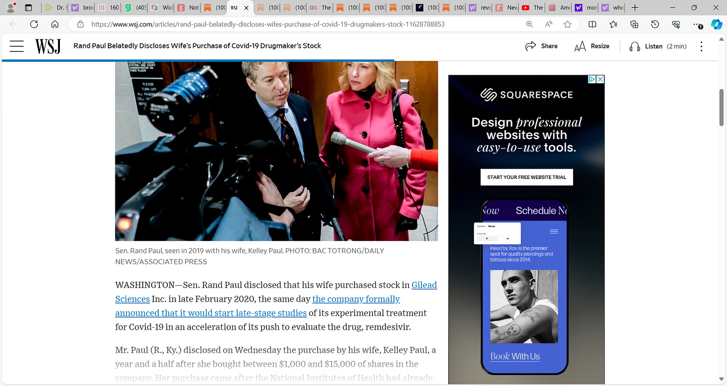Just a reminder of the shit morass we are & were in that begs the question: who really is CLEAN? "Rand Paul Belatedly Discloses Wife’s Purchase of Covid-19 Drugmaker’s Stock; Kentucky senator’s wife