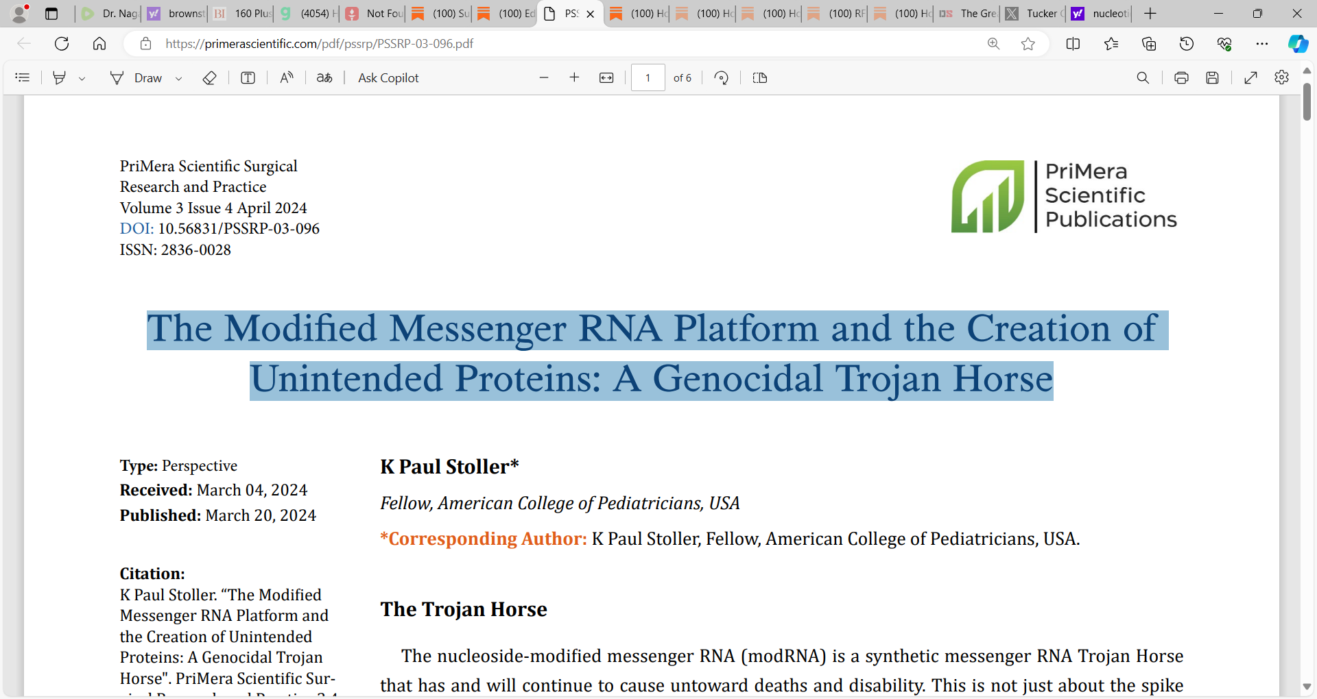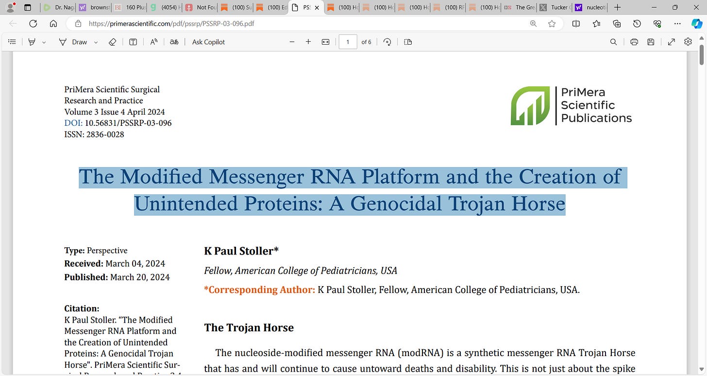 K Paul Stoller's excellent well-written paper on the danger of mRNA technology that is in the mRNA COVID vaccines; it is a bioweapon, it is deadly, it was made to kill; a non-sterilizing vaccine