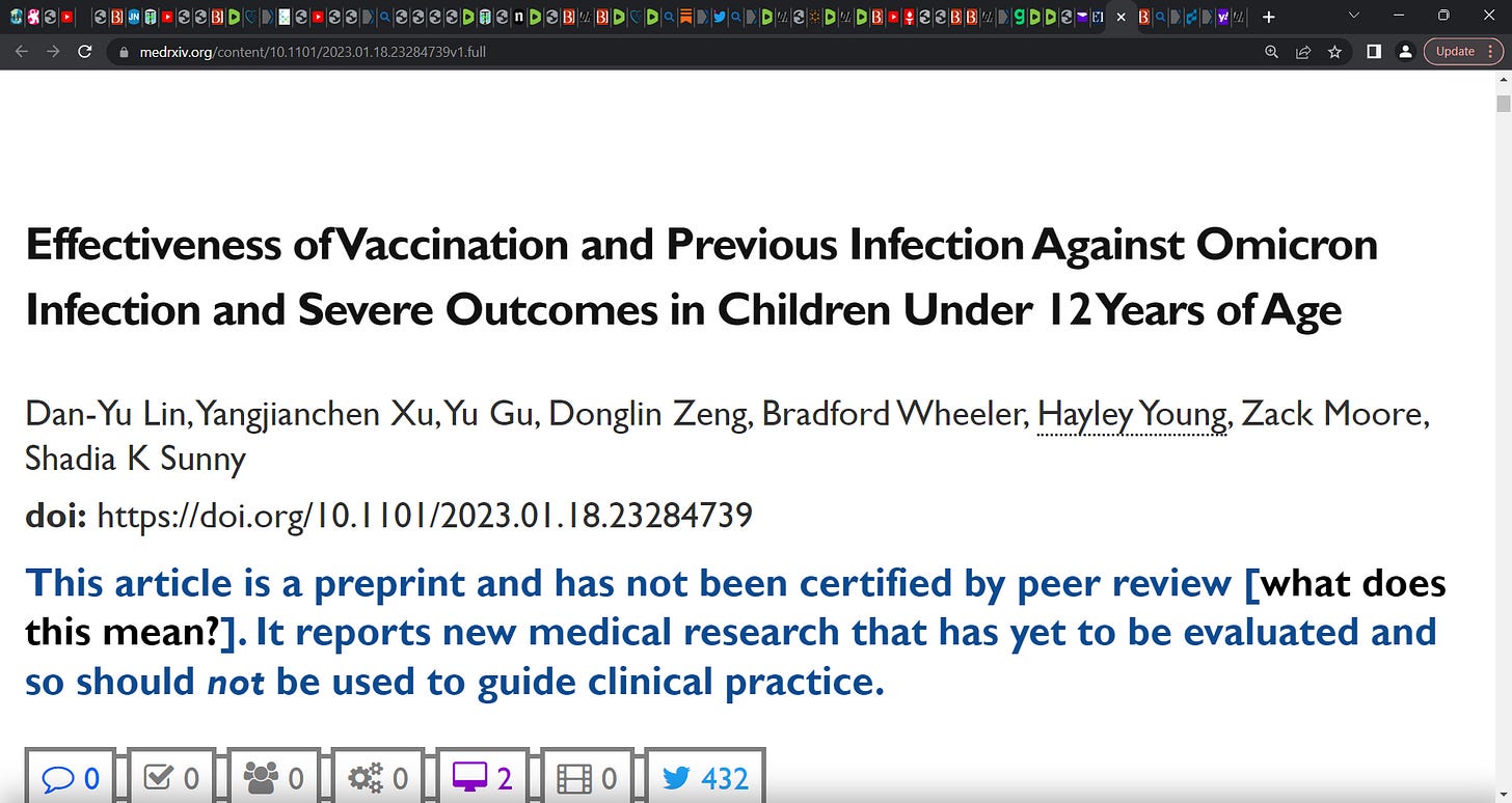 KA-BOOM!!! natural immunity WINS again over vaccine in children! Lin et al. "Effectiveness of Vaccination & Previous Infection Against Omicron Infection and Severe Outcomes in Children Under 12 Years"