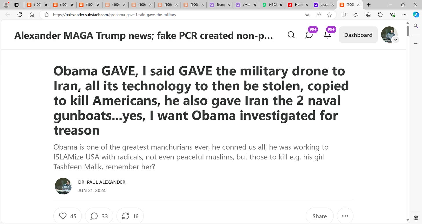 Now let me remind you who Obama is, he gave Iran our Air Force drone technology and naval gunship technology so that Iran can develop it and use against Americans…