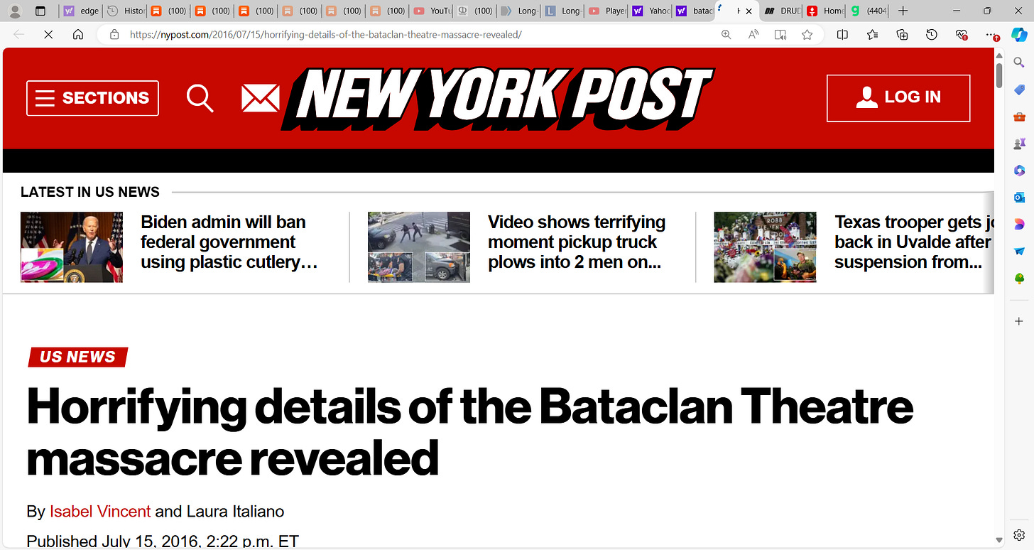 ‘The Islamic State terrorists who attacked the Bataclan theater in Paris last November not only killed scores of innocents — they also gouged out the eyes and sliced up the genitals of some of the victims, according to testimony in a disturbing French report.’