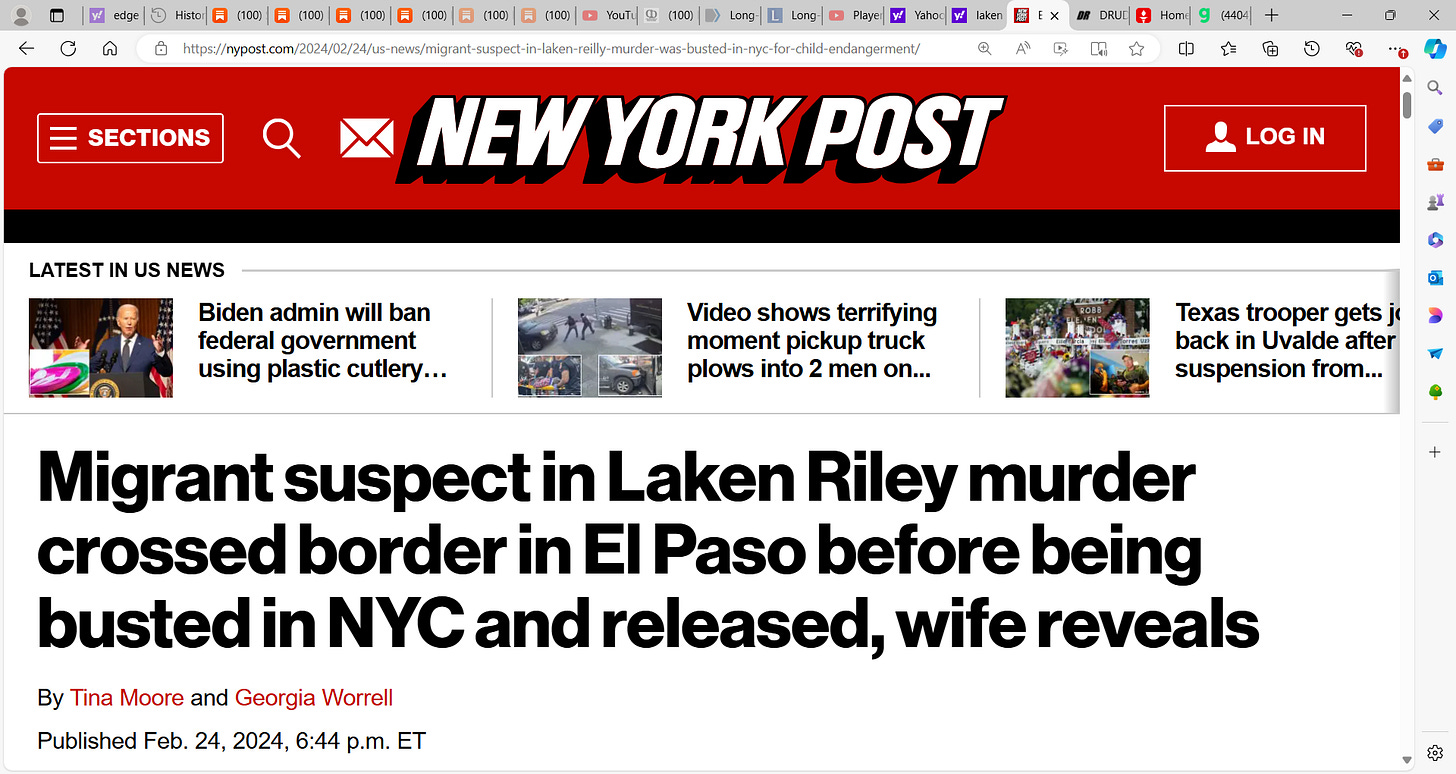‘President Biden said in his 2024 State of the Union address that a nursing student (Laken Riley) “was killed by an illegal.” The authorities called the homicide in February “a crime of opportunity.”’