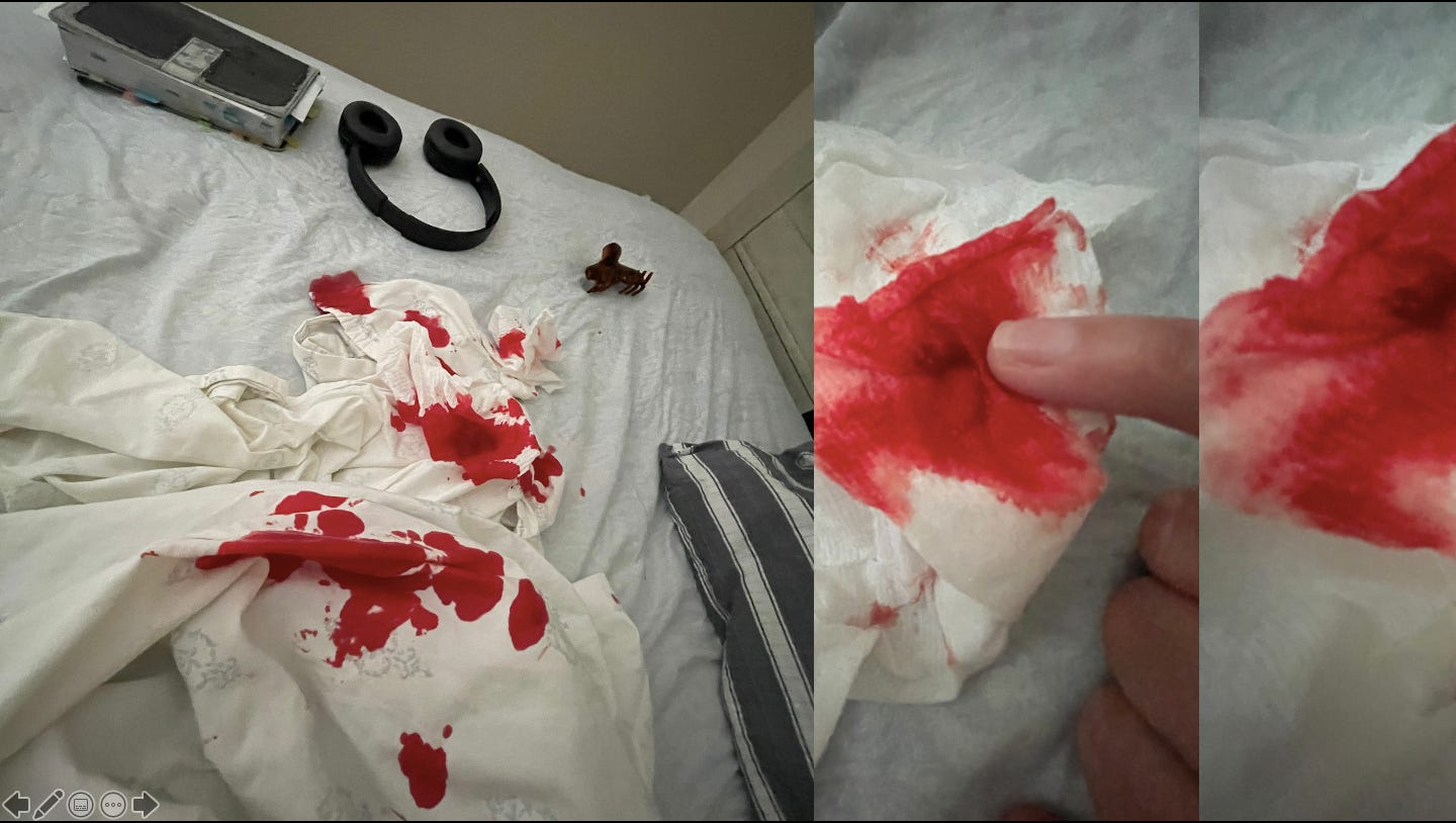 Note: All images are of my blood and my skin. I would testify under penalty of perjury.