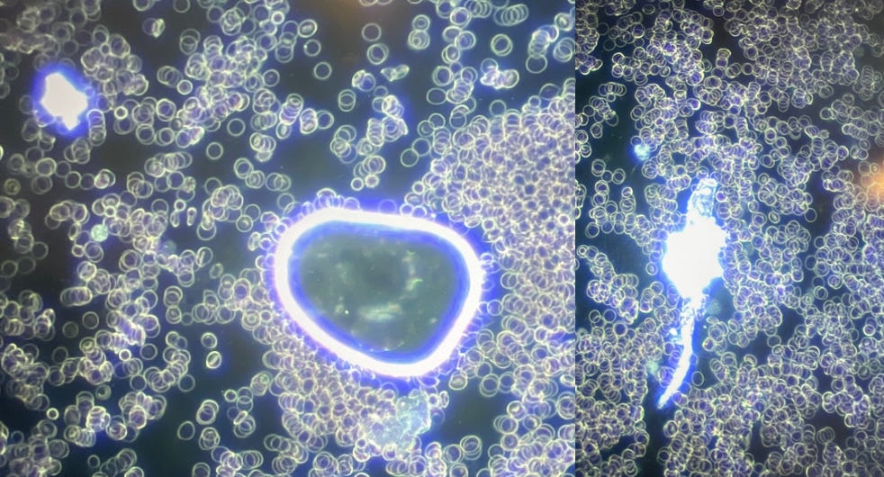 If you pay attention to the photo of her blood under the microscope, there's severe clotting (ruleaux), as reported by many scientists in the vaxxed, swabbed and some unvaxxed !!!