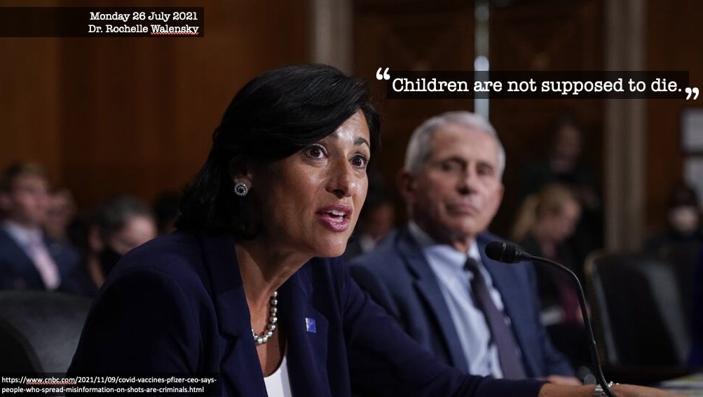 In my opinion, one of the most unforgivable crimes was committed by the CDC Director, Rochelle Walensky, who’s organization knowingly placed an FDA-approved bioweapon on the Childhood Vaccine Schedule.