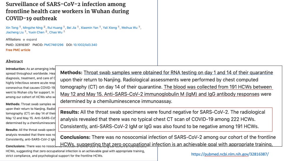 There was also early evidence from Wuhan that there was NO human-to-human transmission. The originally mRNA nanoparticles may have been programmed to produce viruses or were pre-loaded with toxins, but they were not infectious.