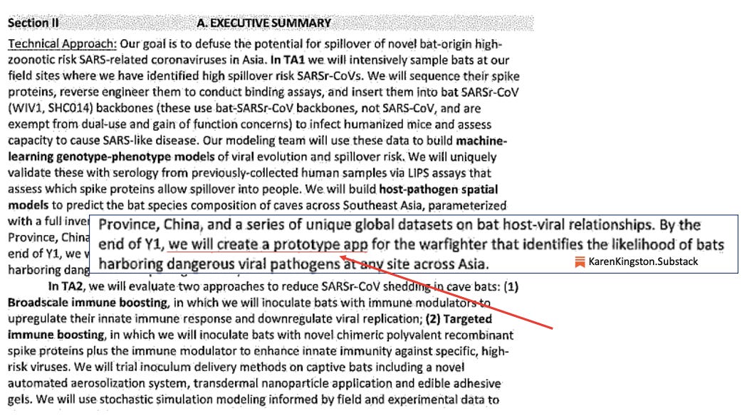 In the full context of the proposal, EcoHealth states that their deliverables include;