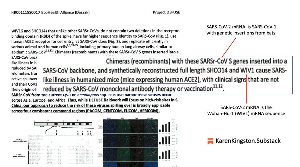 SARS-CoV-2 WIV-1 mRNA was created by using the genetic sequence of the original SARS-CoV human virus as a backbone, and then inserting new genes from bats.